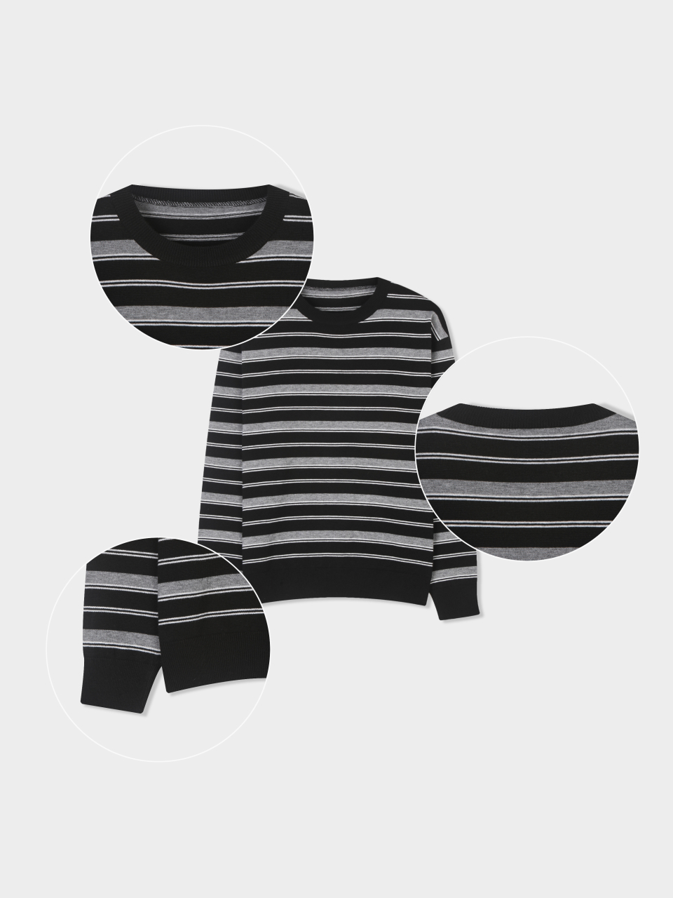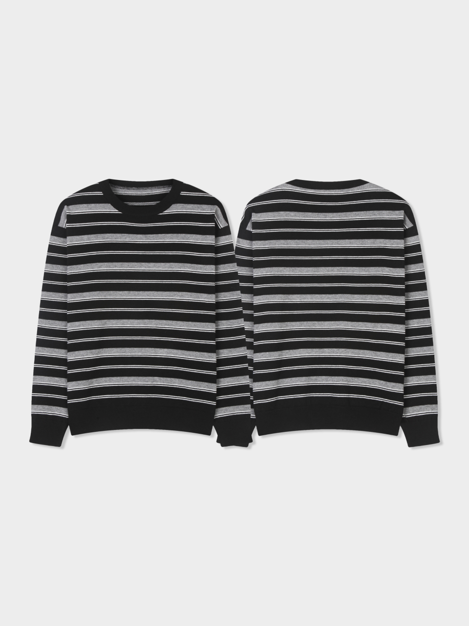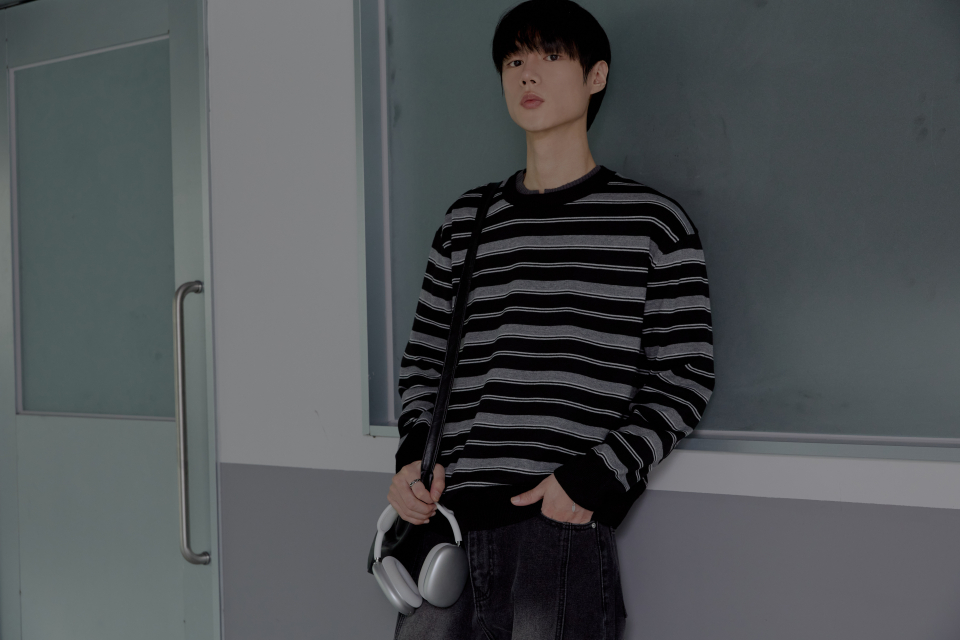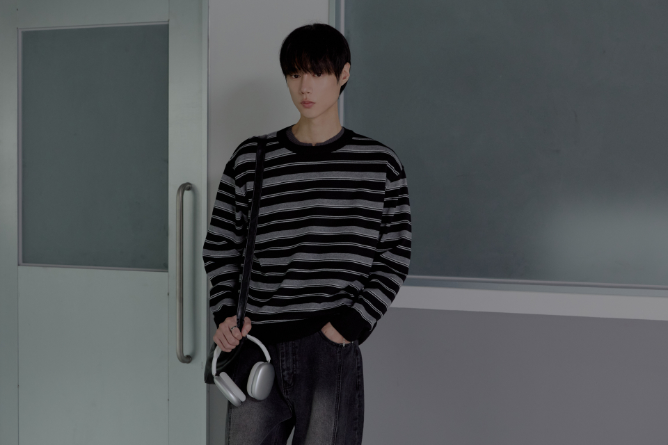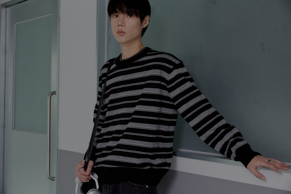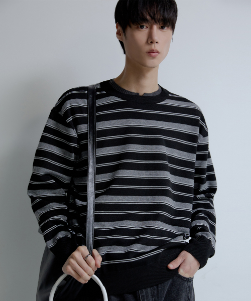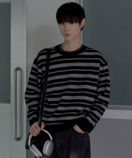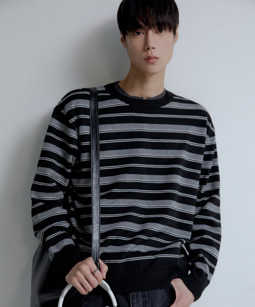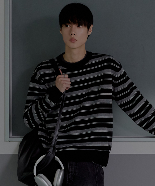 트리플 스트라이프 세미 크롭 니트 [블랙]
