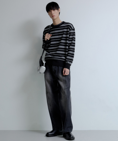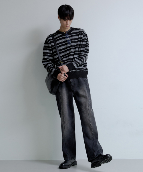 에든 슬랍 세미 와이드 데님 팬츠 [블랙]
