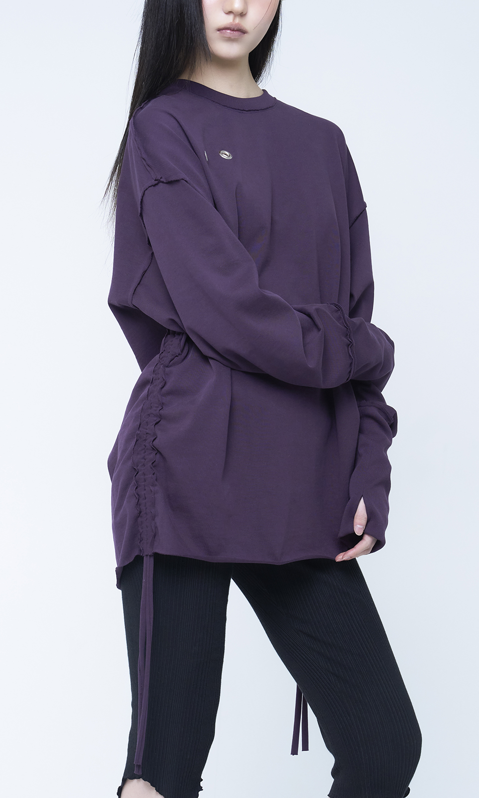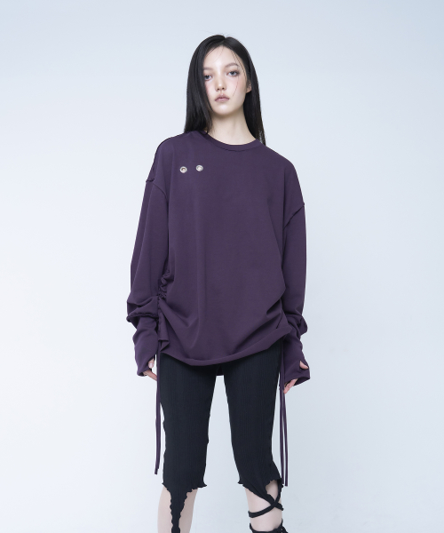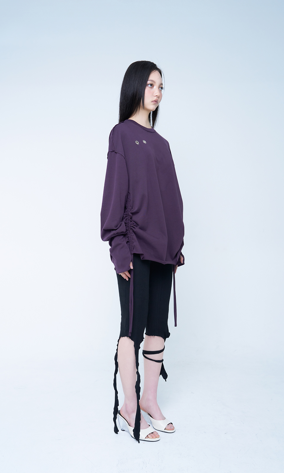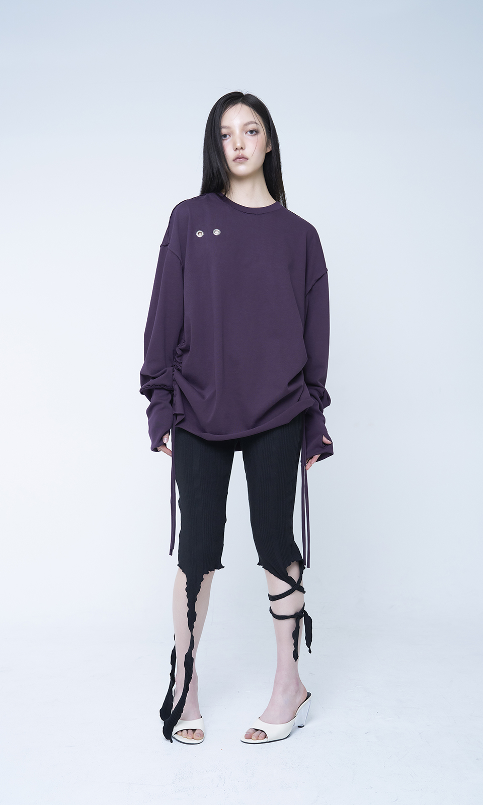 - 사이드 셔링 디테일과 전면 아일렛 디테일이 포인트