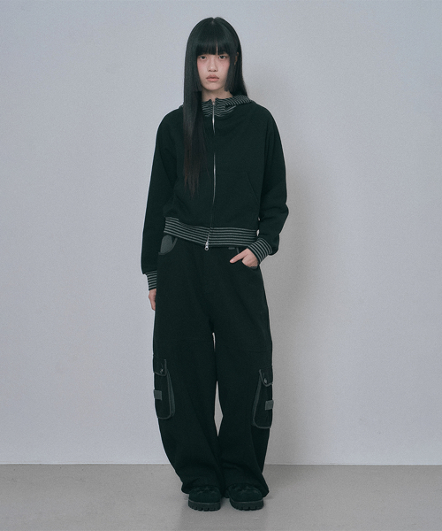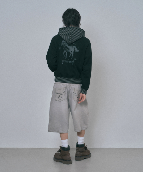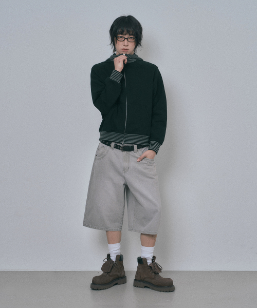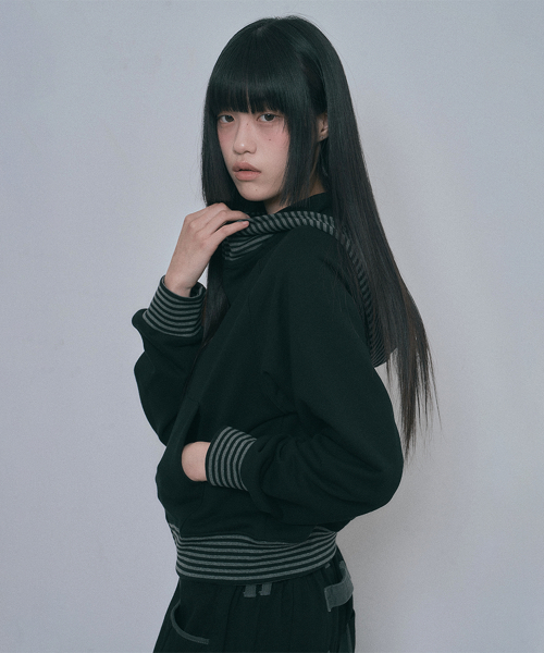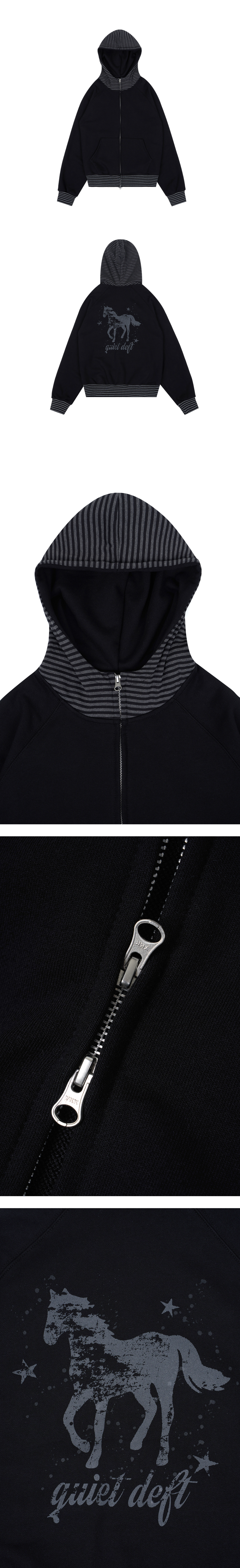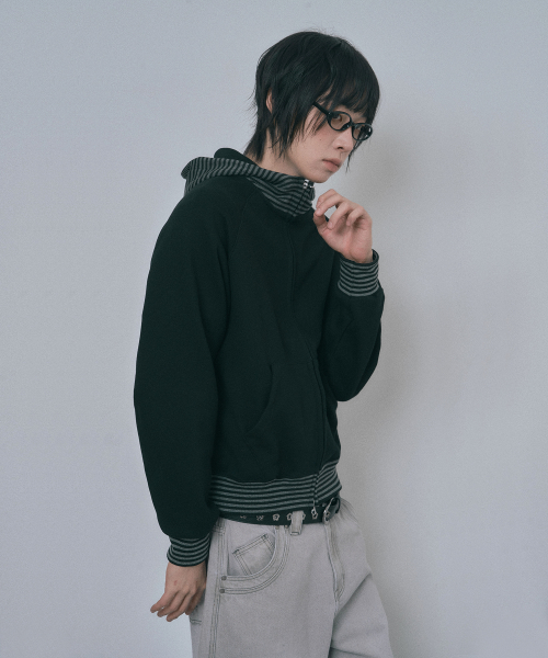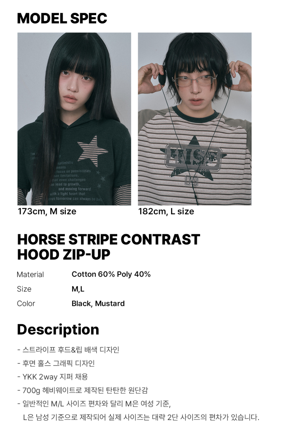 홀스 스트라이프 배색 후드집업 - 머스타드