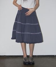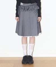 체크 배색 프릴 포인트 볼륨 플레어 캉캉 미디 스커트 [네이비]