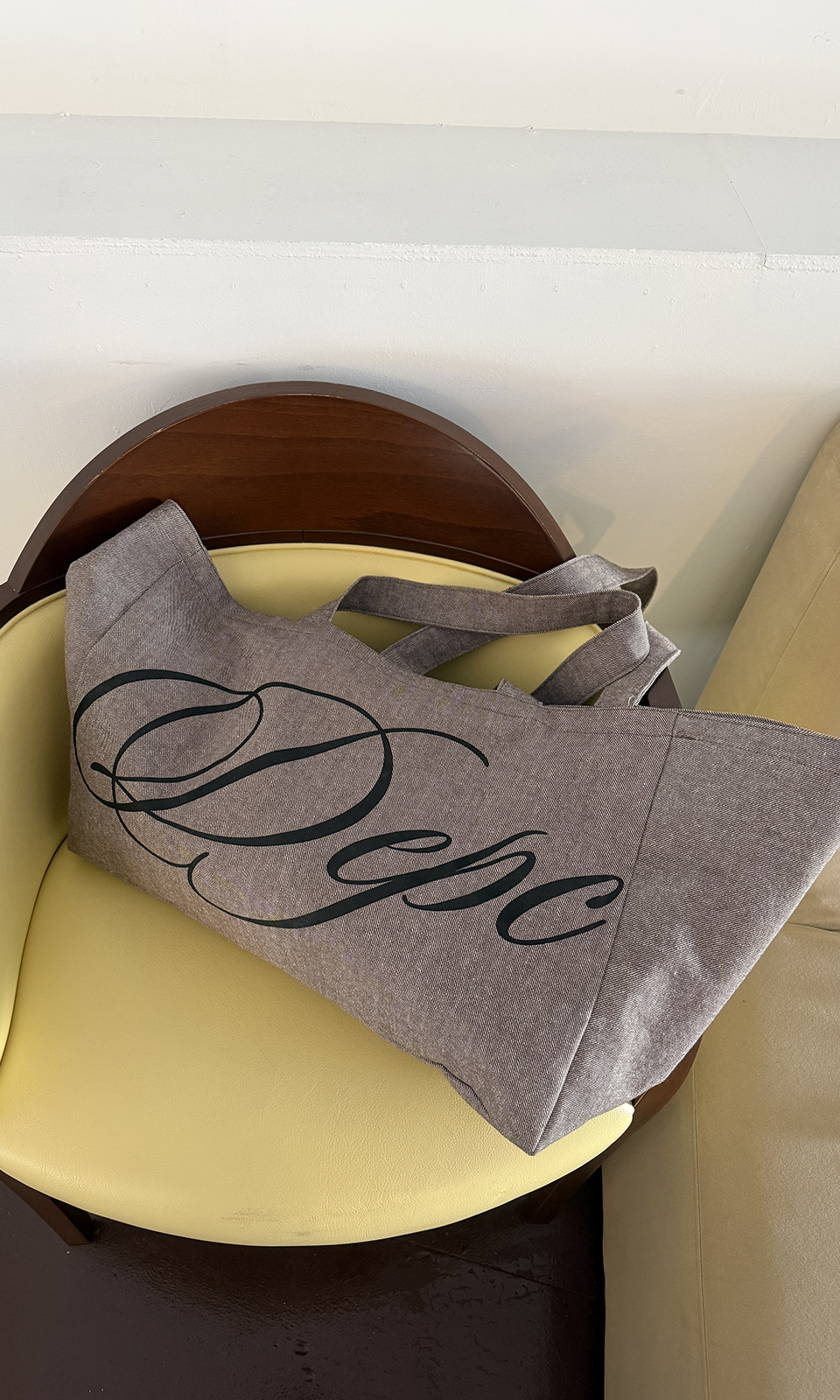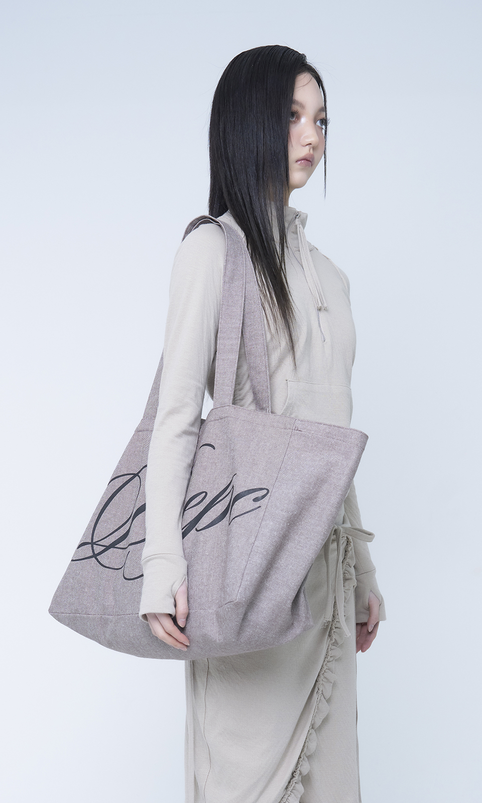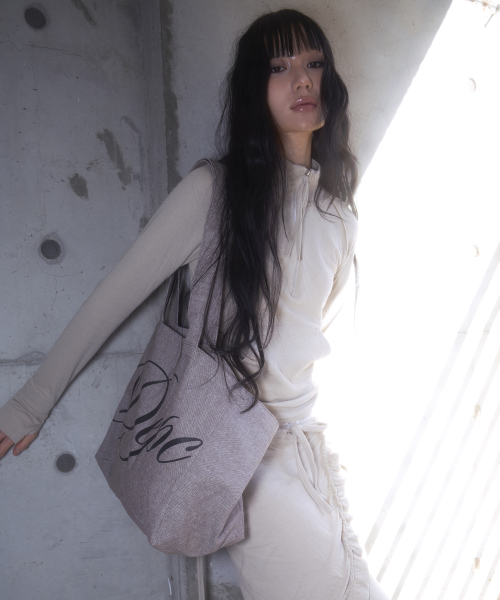- 가로로 긴 실루엣의 코튼 로고 에코백