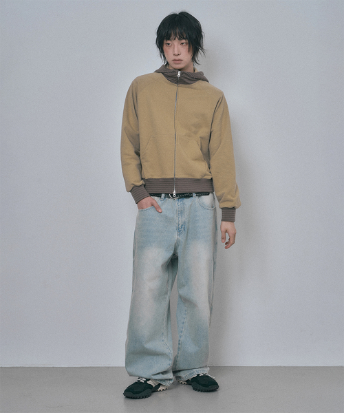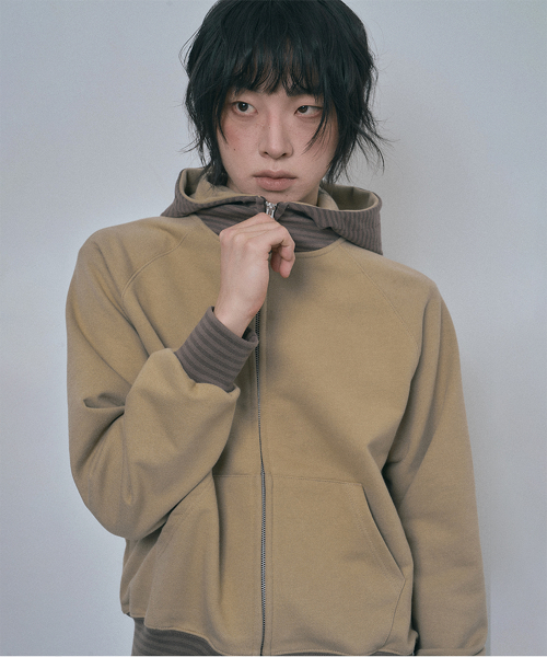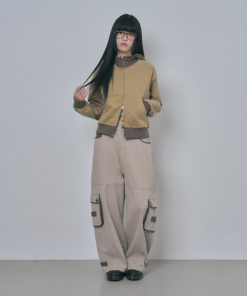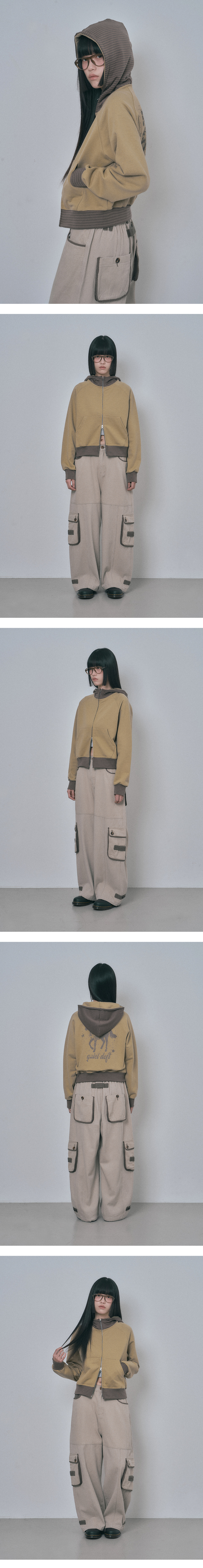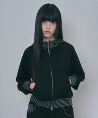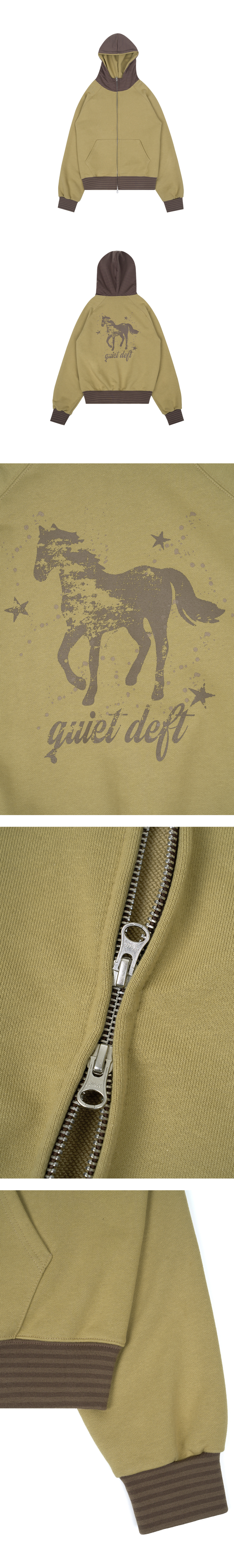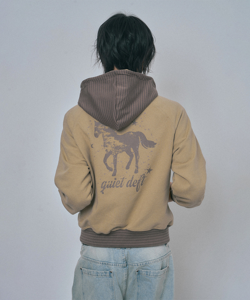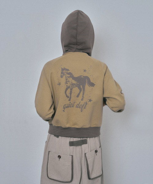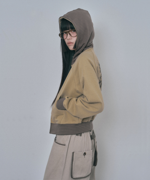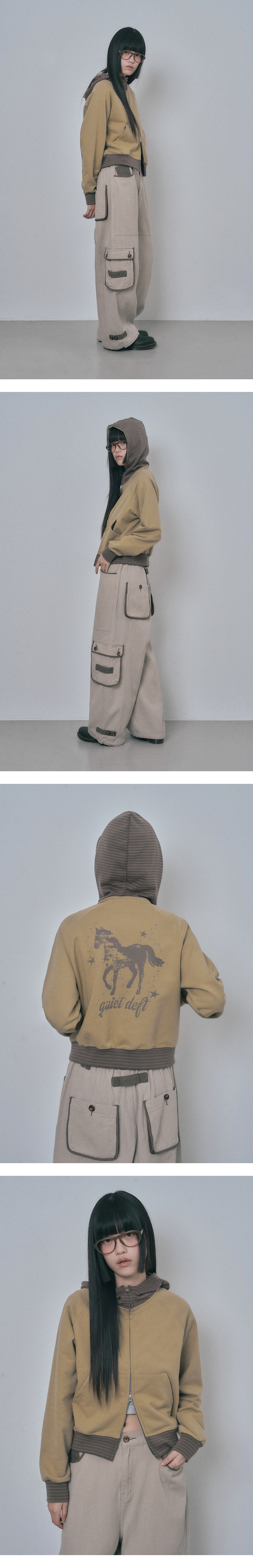 홀스 스트라이프 배색 후드집업 - 머스타드