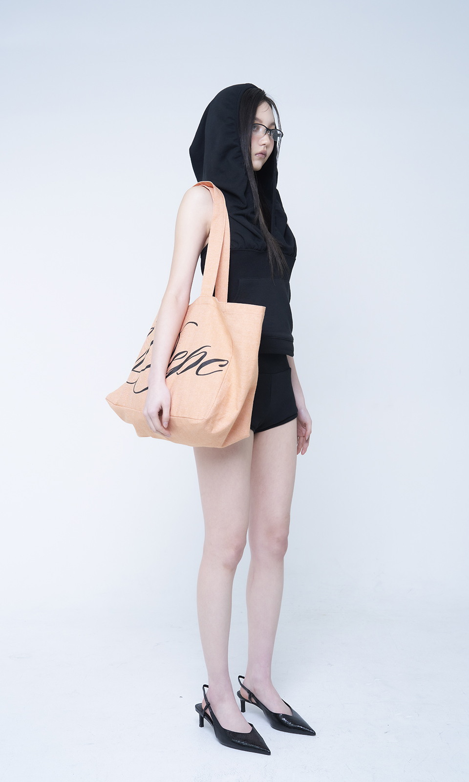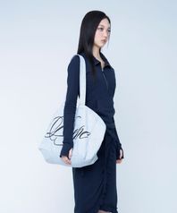 - 가로로 긴 실루엣의 코튼 로고 에코백