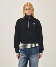 W SMALL CLASSIC LOGO HALF ZIPUP CROP SWEATSHIRT black