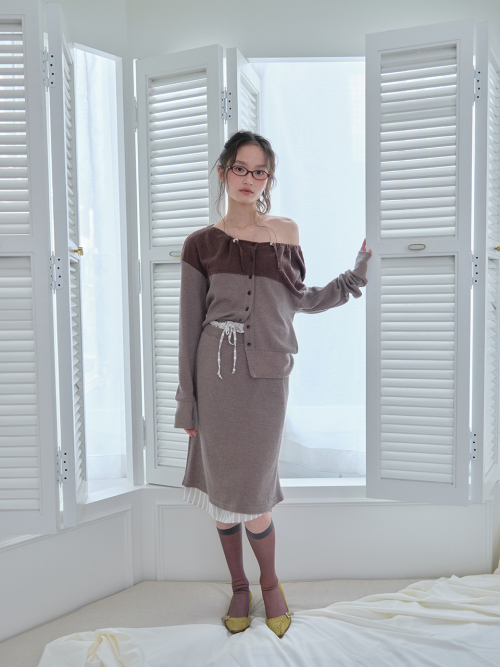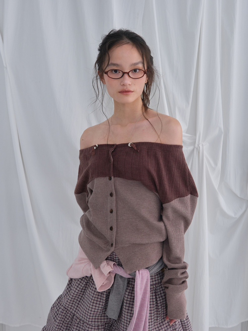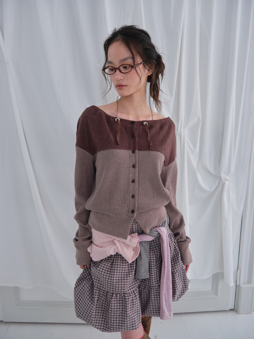 블룸 네크라인 가디건 Bloom Neckline Cardigan (Oatmeal)