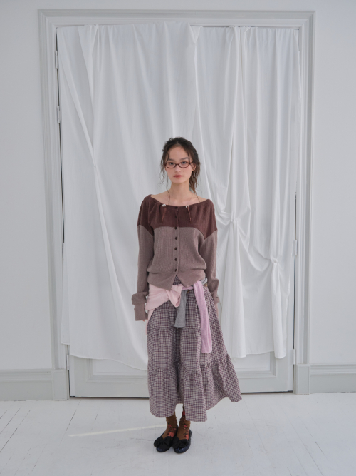 투웨이 버튼 셔링 스커트 2way Button Shirring Skirt (Purple Check)