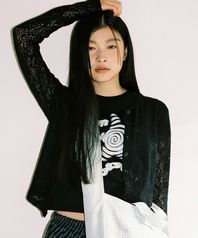 레이스 니트 가디건 - 블랙