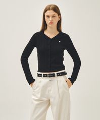 [고윤정 착장] W SMALL CLASSIC LOGO HALF KNIT CARDIGAN SET UP navy