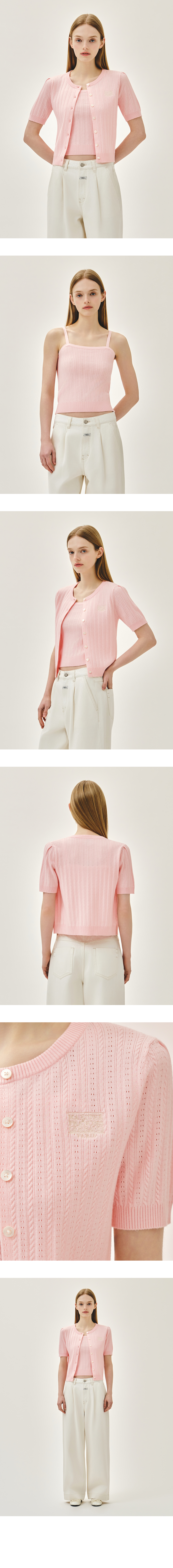 W SMALL CLASSIC LOGO HALF KNIT CARDIGAN SET UP light pink
