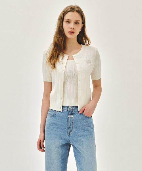 W SMALL CLASSIC LOGO HALF KNIT CARDIGAN SET UP ivory