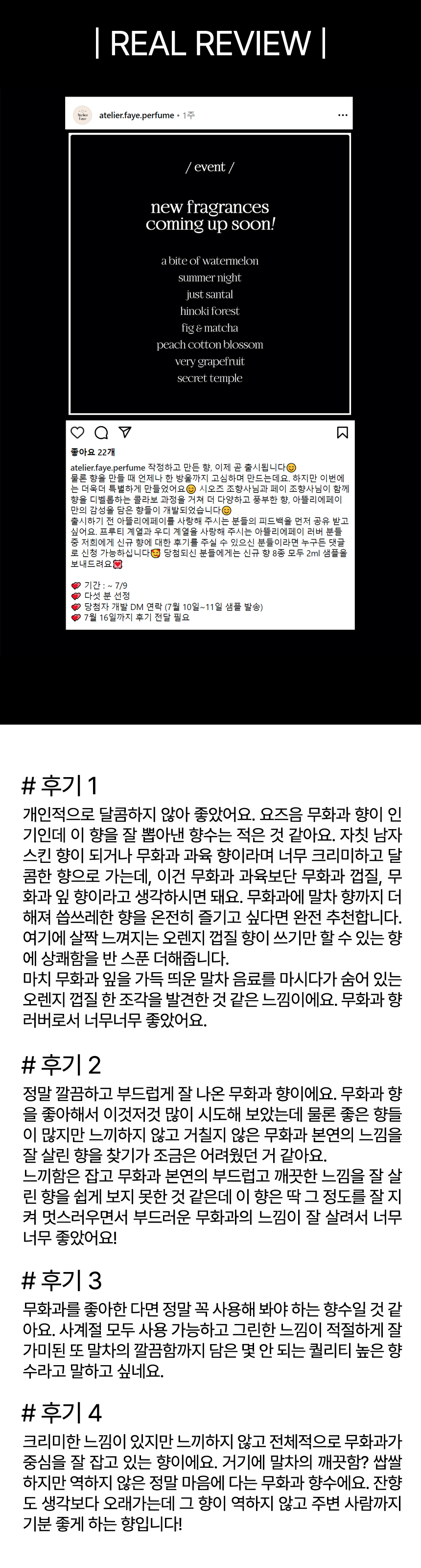 아뜰리에페이(ATELIERFAYE)는 뜻을 함께하는 조향사들이 모인 퍼퓸 하우스입니다. 자연의 풋풋하고 은은한 향기들, 마음에서 피어나는 감정들, 머릿속을 채우는 상상들은 물론, 다채로운 감성이 깃든 아트워크에서 영감을 받아 향기로운 아름다움을 창조하며 그 안에 환상을 담습니다.