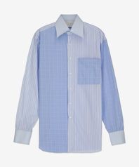 클래식 버튼업 패치워크 멀티 스트라이프 셔츠 - 블루 멀티 / N1003ABLUEMULTI
