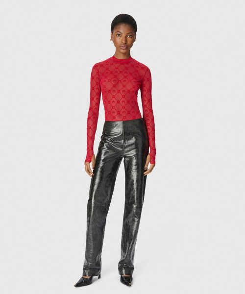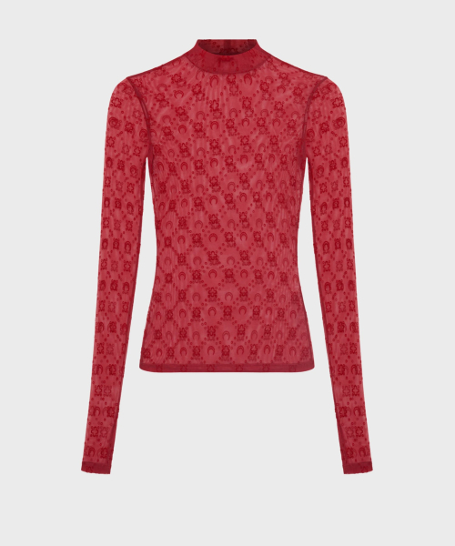 (W) 무노그램 메쉬 플록 롱슬리브 하이넥 탑 리본 레드 MOONOGRAM MESH FLOCK LS HIGHNECK TOP RD11 RIBBON RED