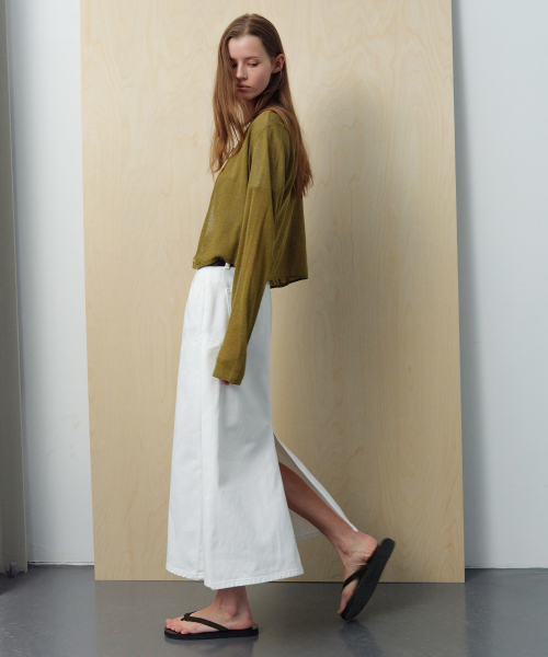 Trigger Pleated Denim Long Skirt - Off White