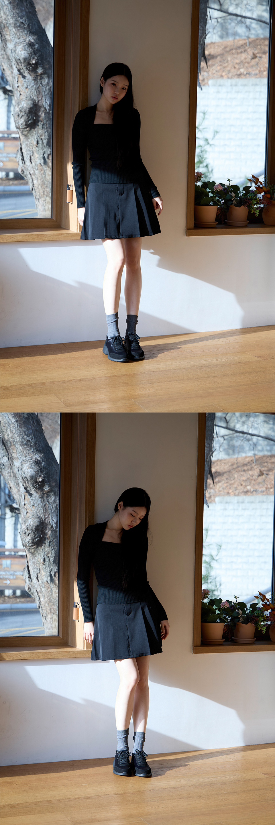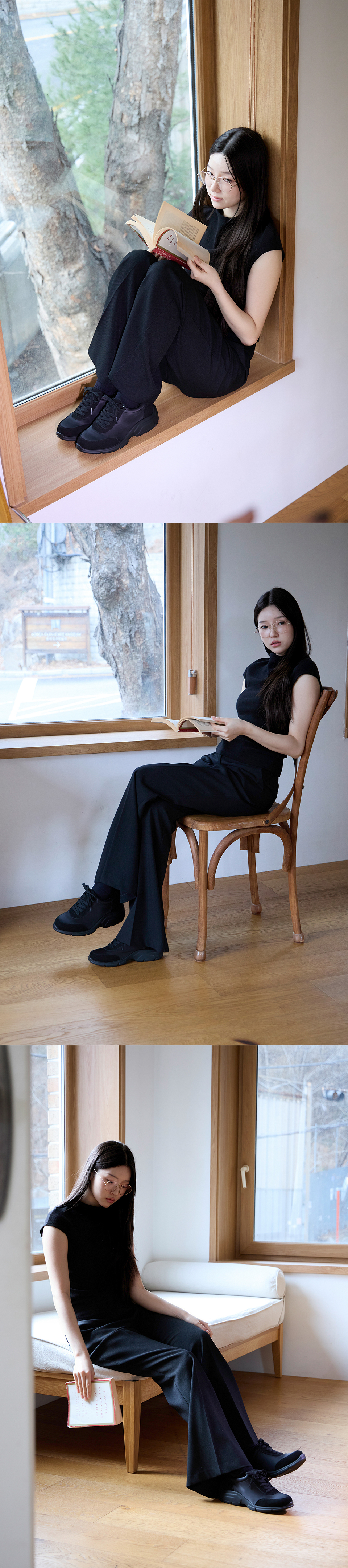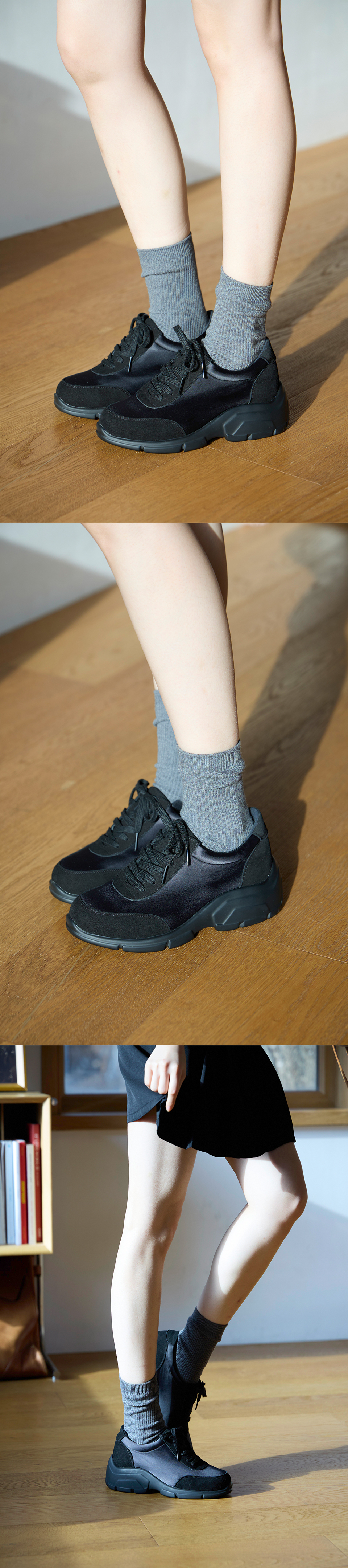 LILIA 발레코어 셔링 스니커즈_블랙 (1cm)