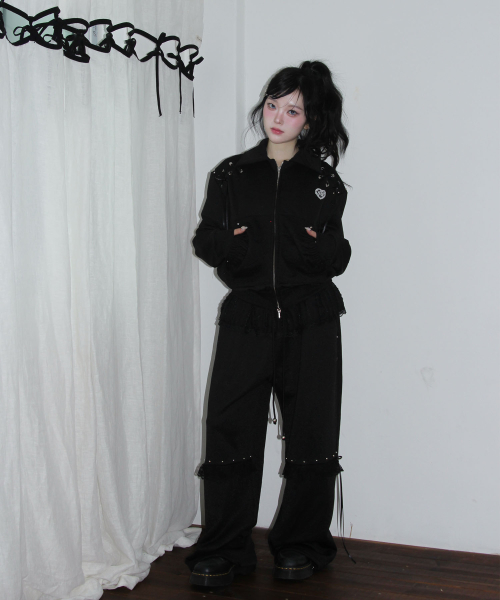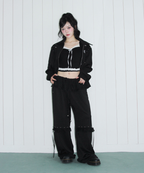 - 광택감이 느껴지는 쮸리 소재로 제작한 져지 타입 팬츠