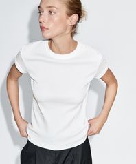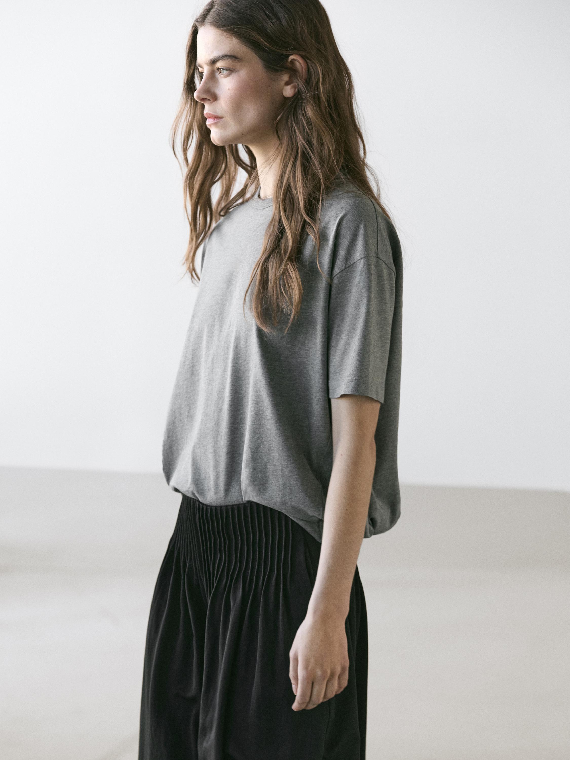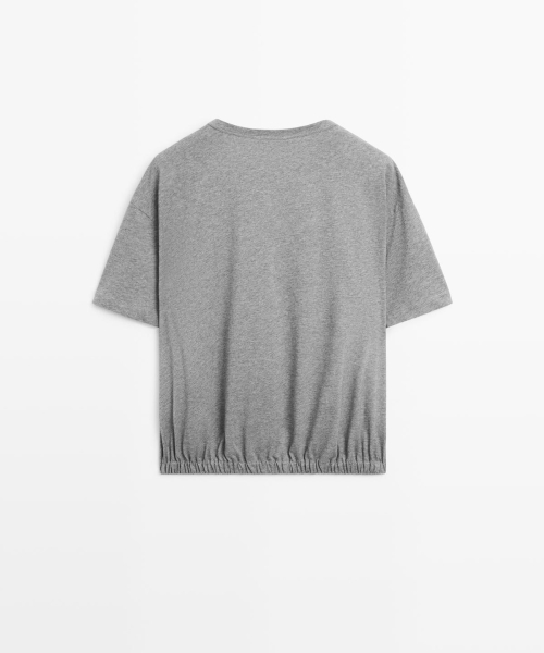 제품 설명: 코튼 소재 티셔츠 . 크루넥 . 반소매 . 신축성 있는 허리 뒤쪽 . 벌룬 헴 . 테일러드되지 않은 넓고 편안한 실루엣