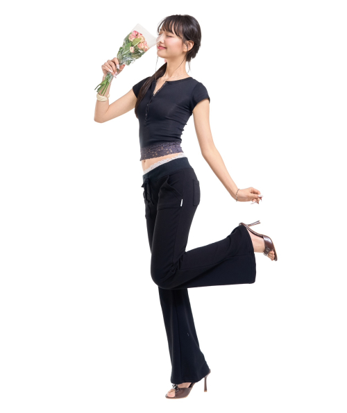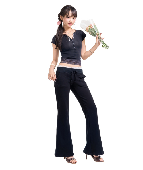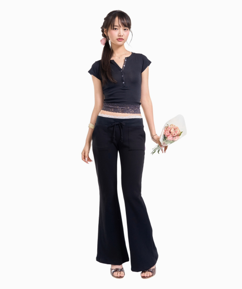 Lace banding sweatpants (black)