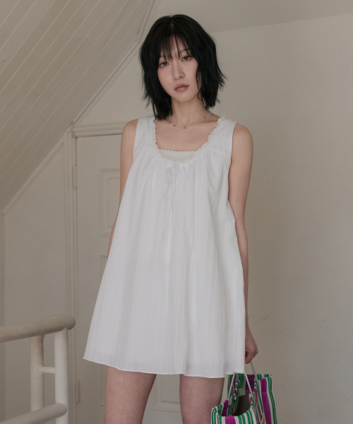 셔링 레이스 미니 원피스