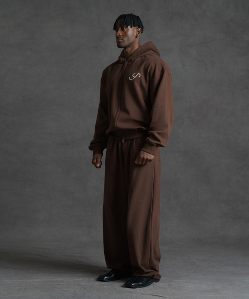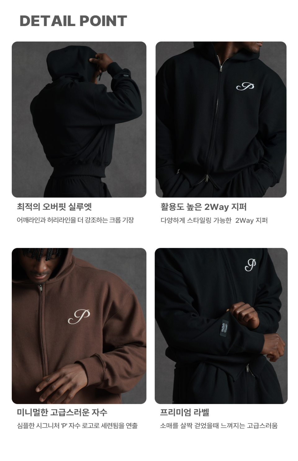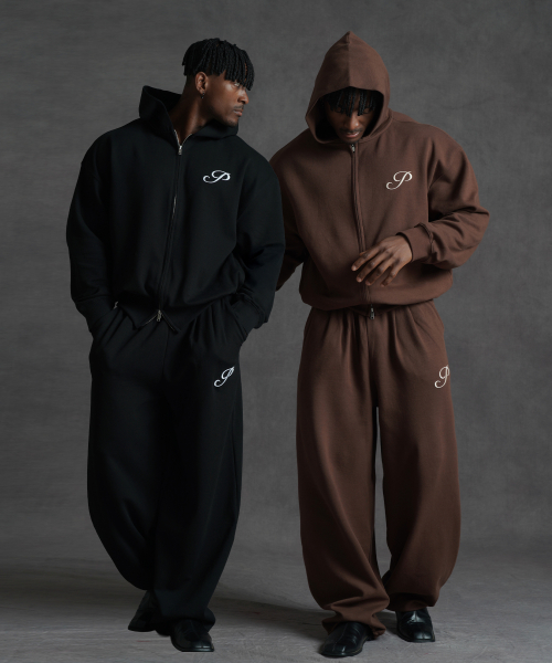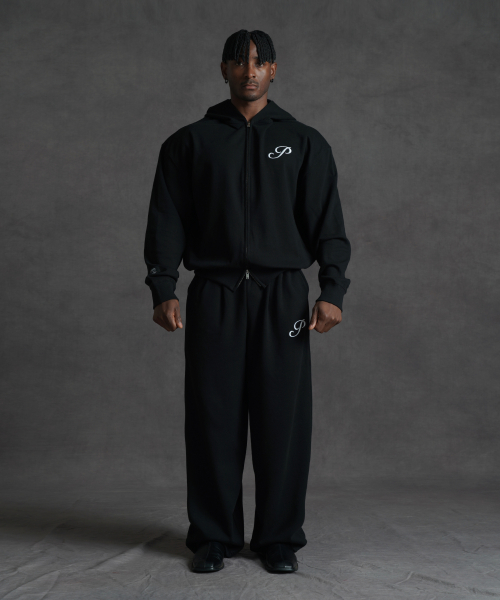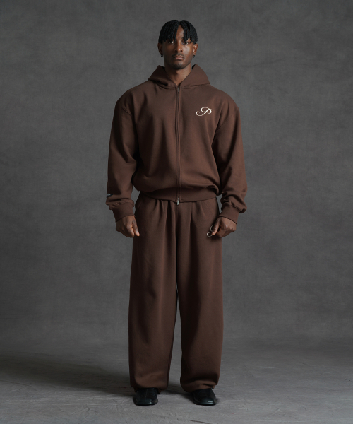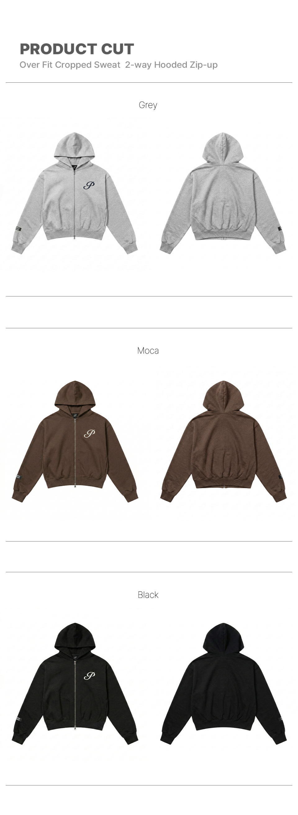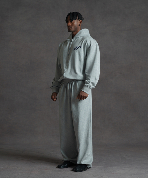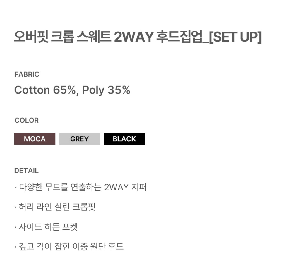[SET] 오버핏 크롭 스웨트 2-way 후드집업 + 오버핏 와이드 스웨트 팬츠 (3COLOR)