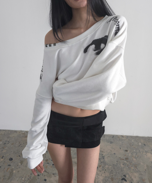 OFF SHOULDER SWEAT SHIRT WHITE