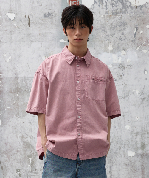 가먼트 다잉 하프 코튼 셔츠 [핑크]