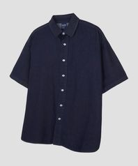 버튼 다운 오버핏 데님 하프 셔츠 [인디고]