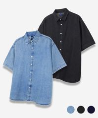[2PACK]버튼 다운 오버핏 데님 하프 셔츠 - 3Color