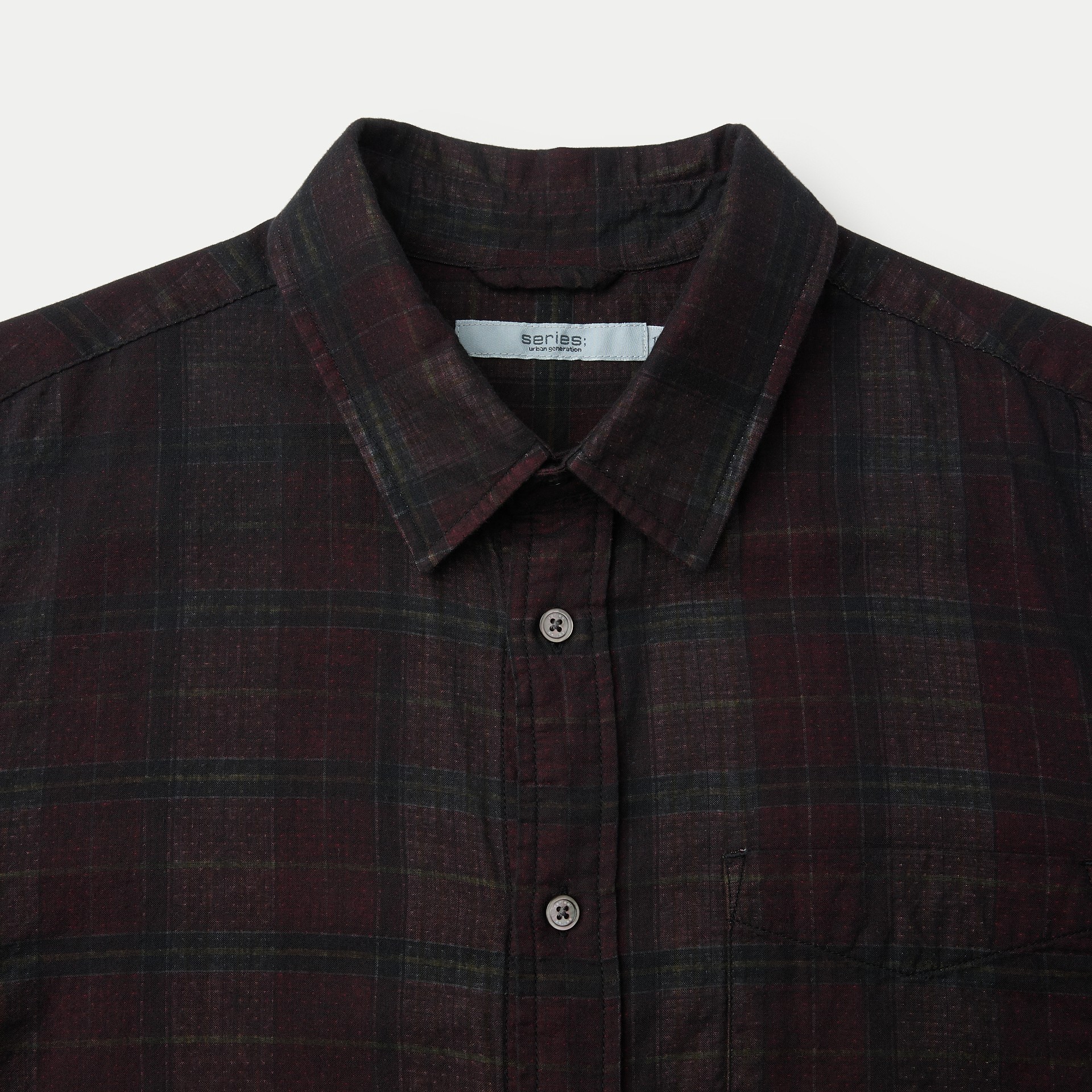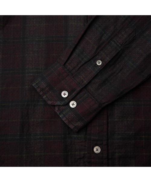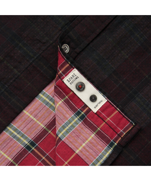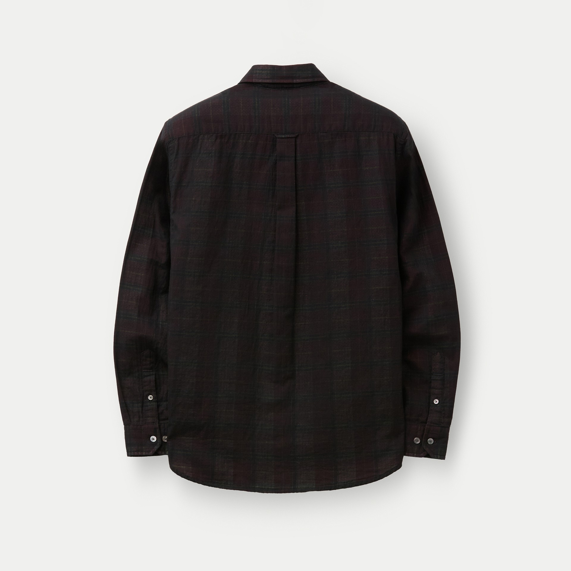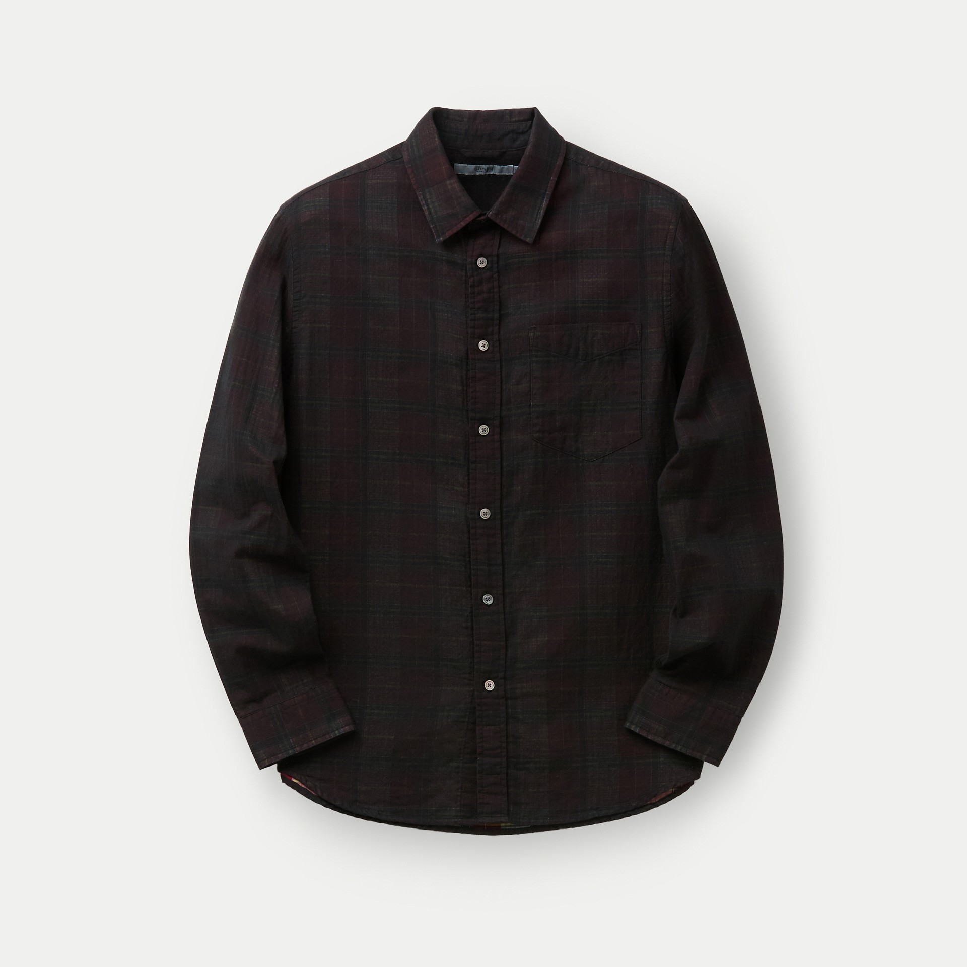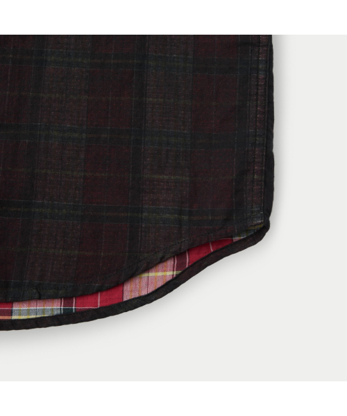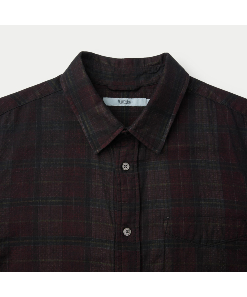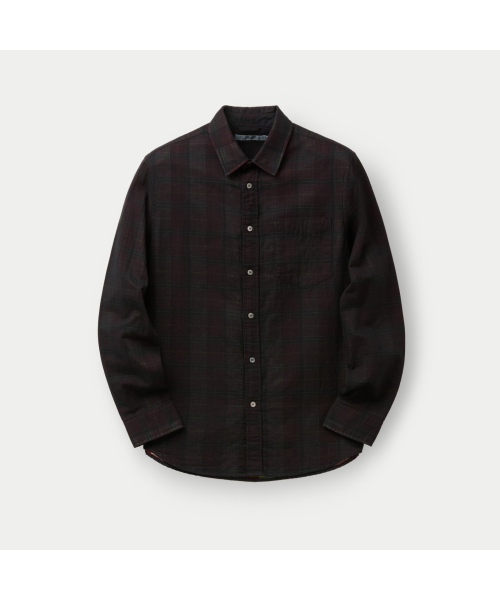이중지 원단을 사용해 앞뒤 소재감이 다른 체크 패턴이 특징인 셔츠.