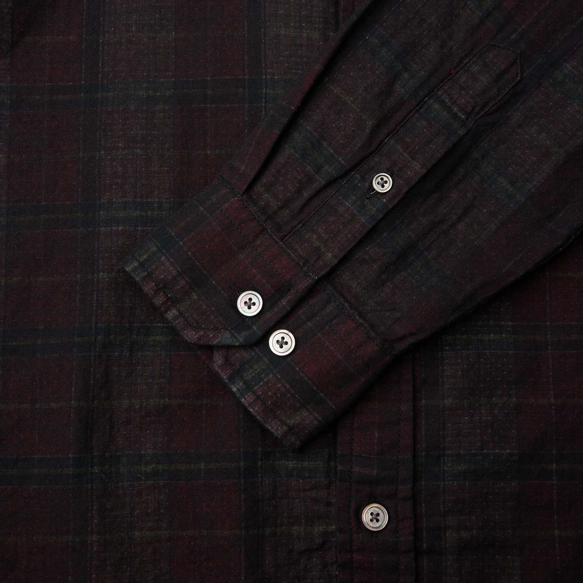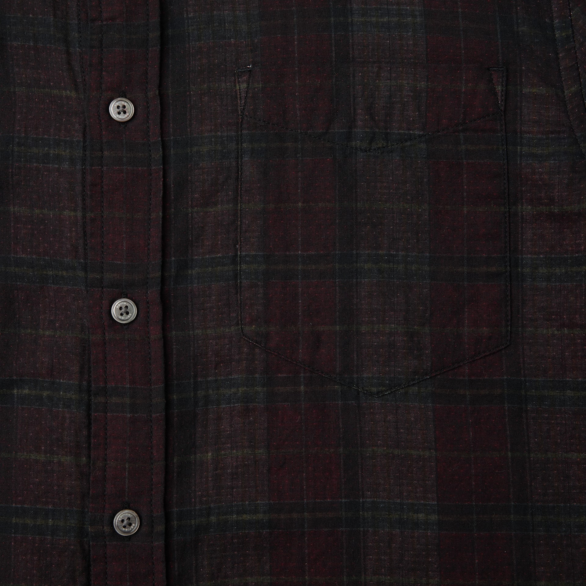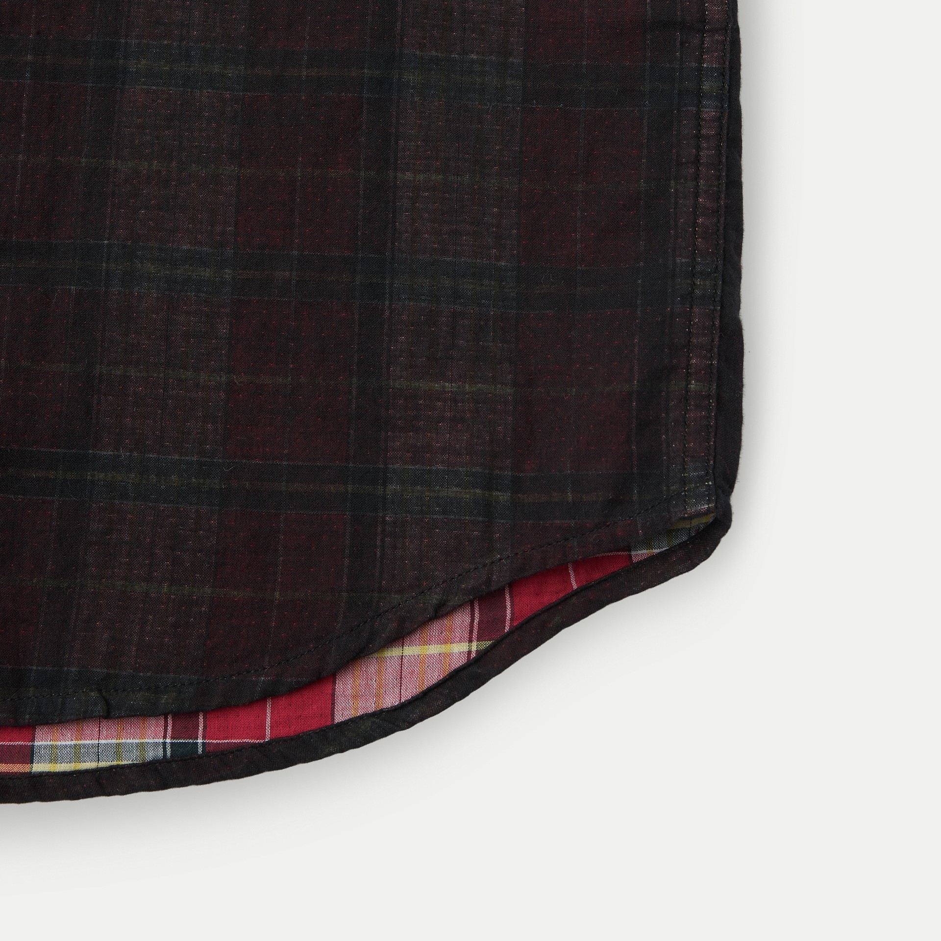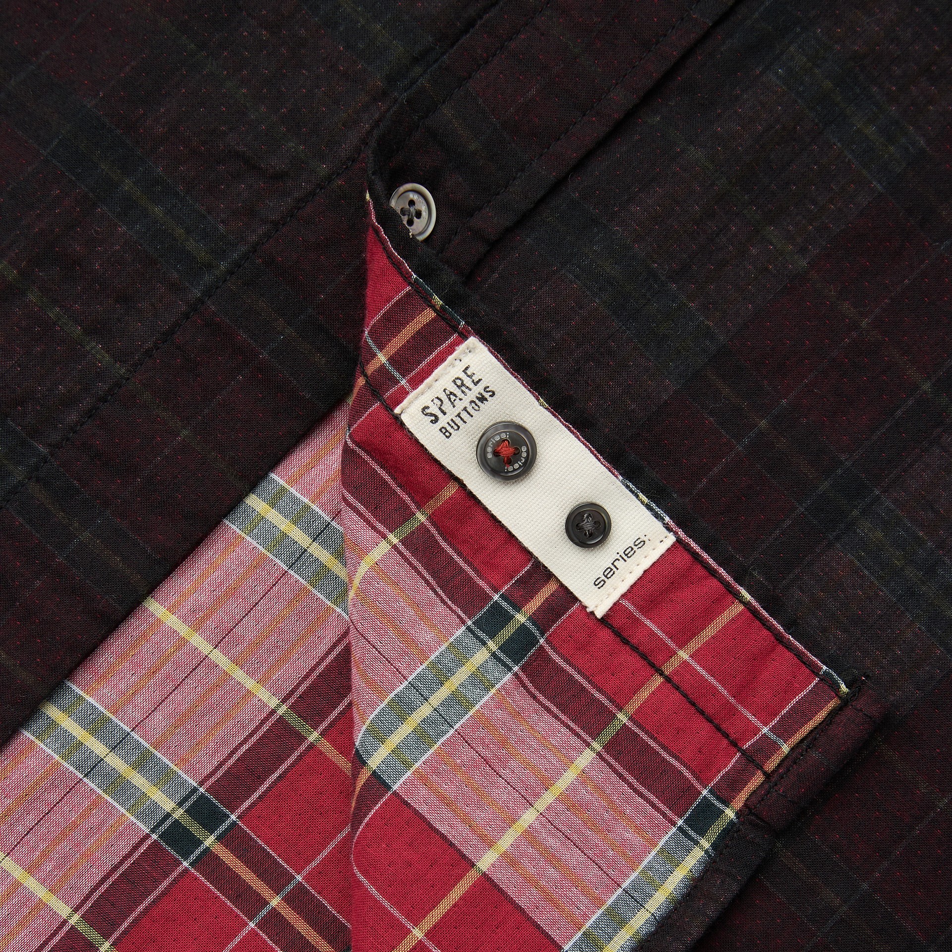 이중지 원단을 사용해 앞뒤 소재감이 다른 체크 패턴이 특징인 셔츠.