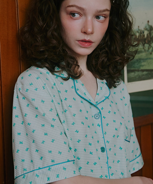 [2PACK] 미니리본 여성 클린핏 반팔 파자마세트