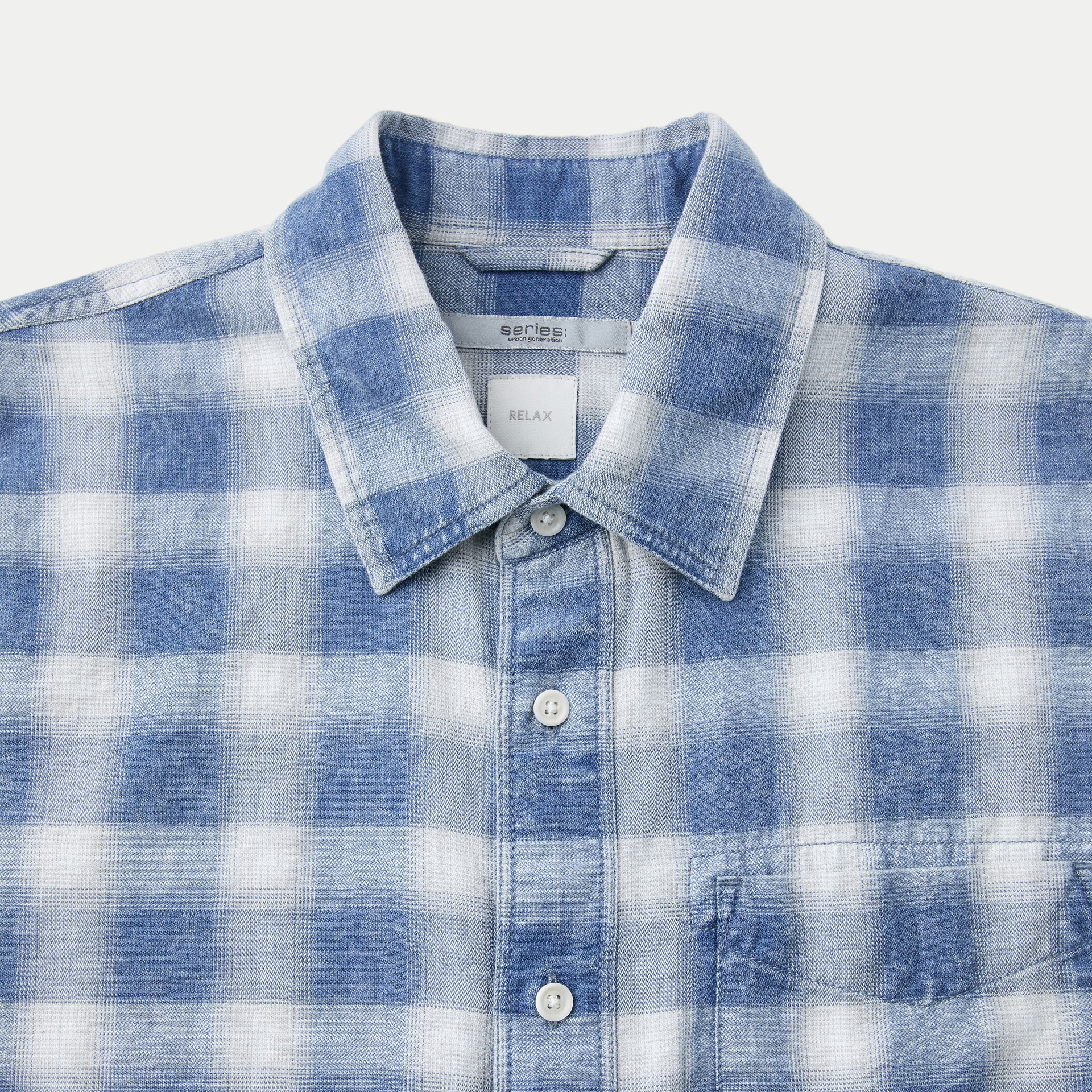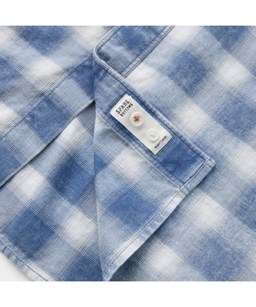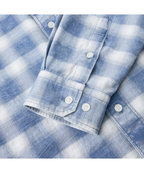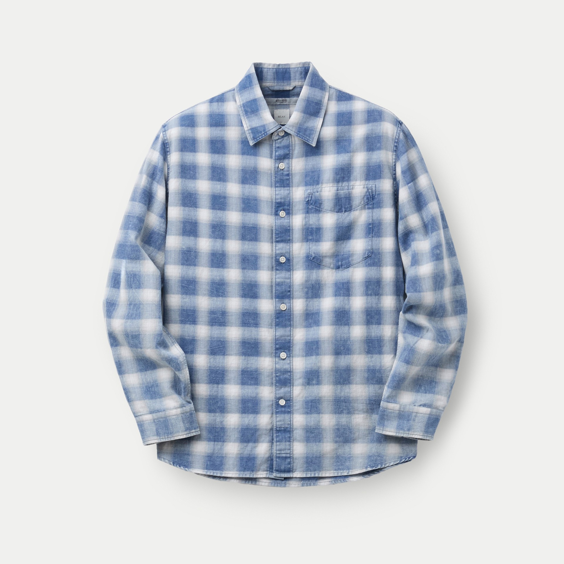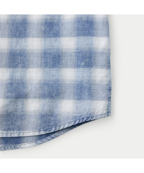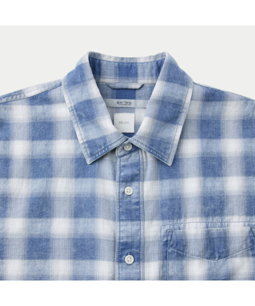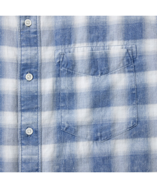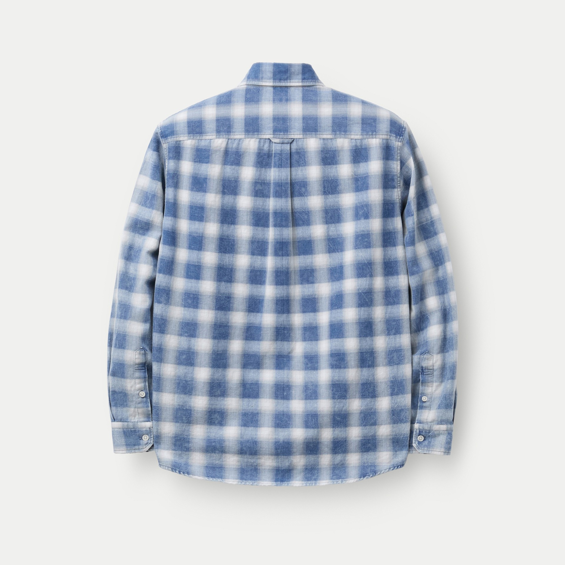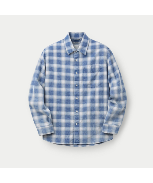 인디고 원사를 사용한 체크 패턴에 가먼트 워싱을 더해 빈티지한 외관이 돋보이는 셔츠.