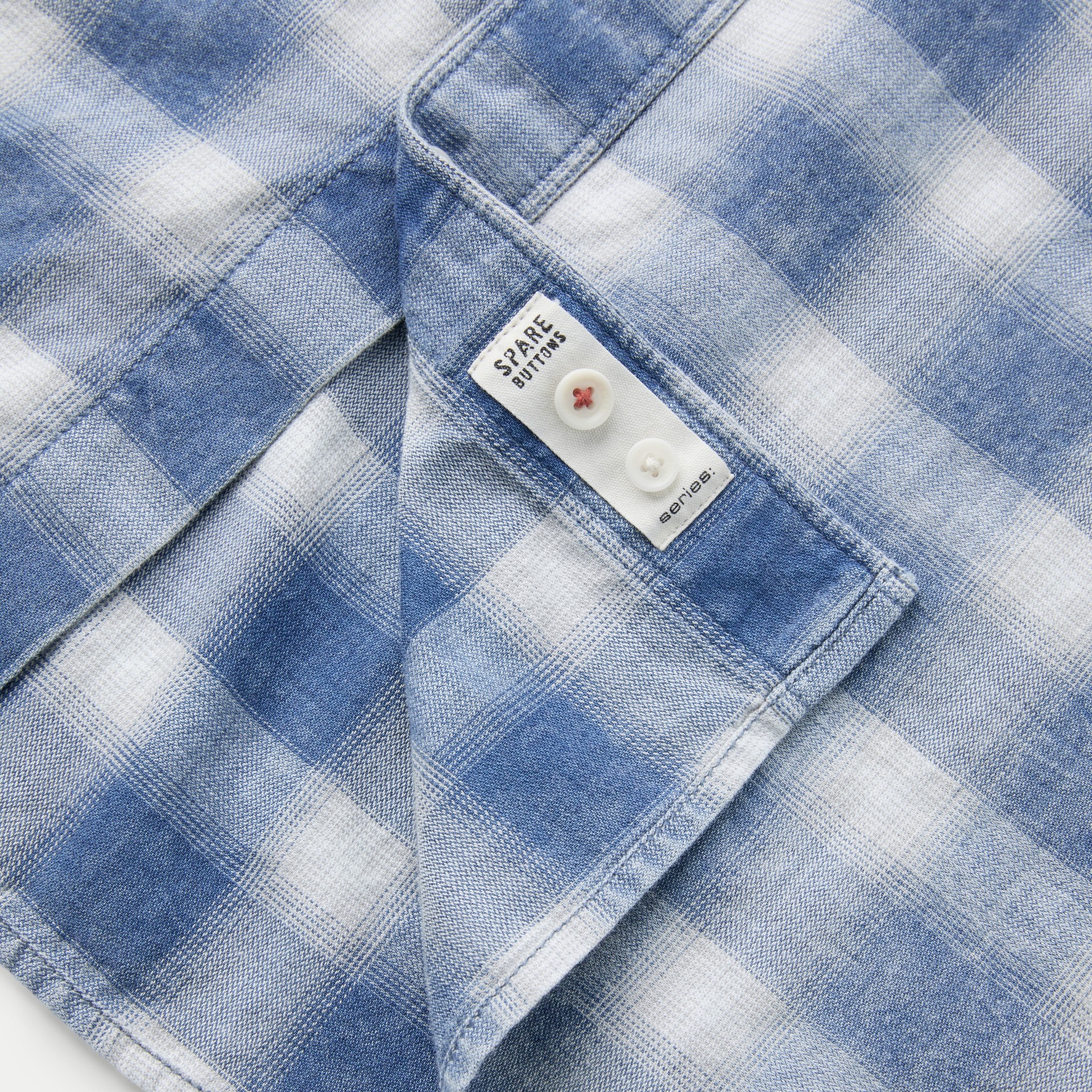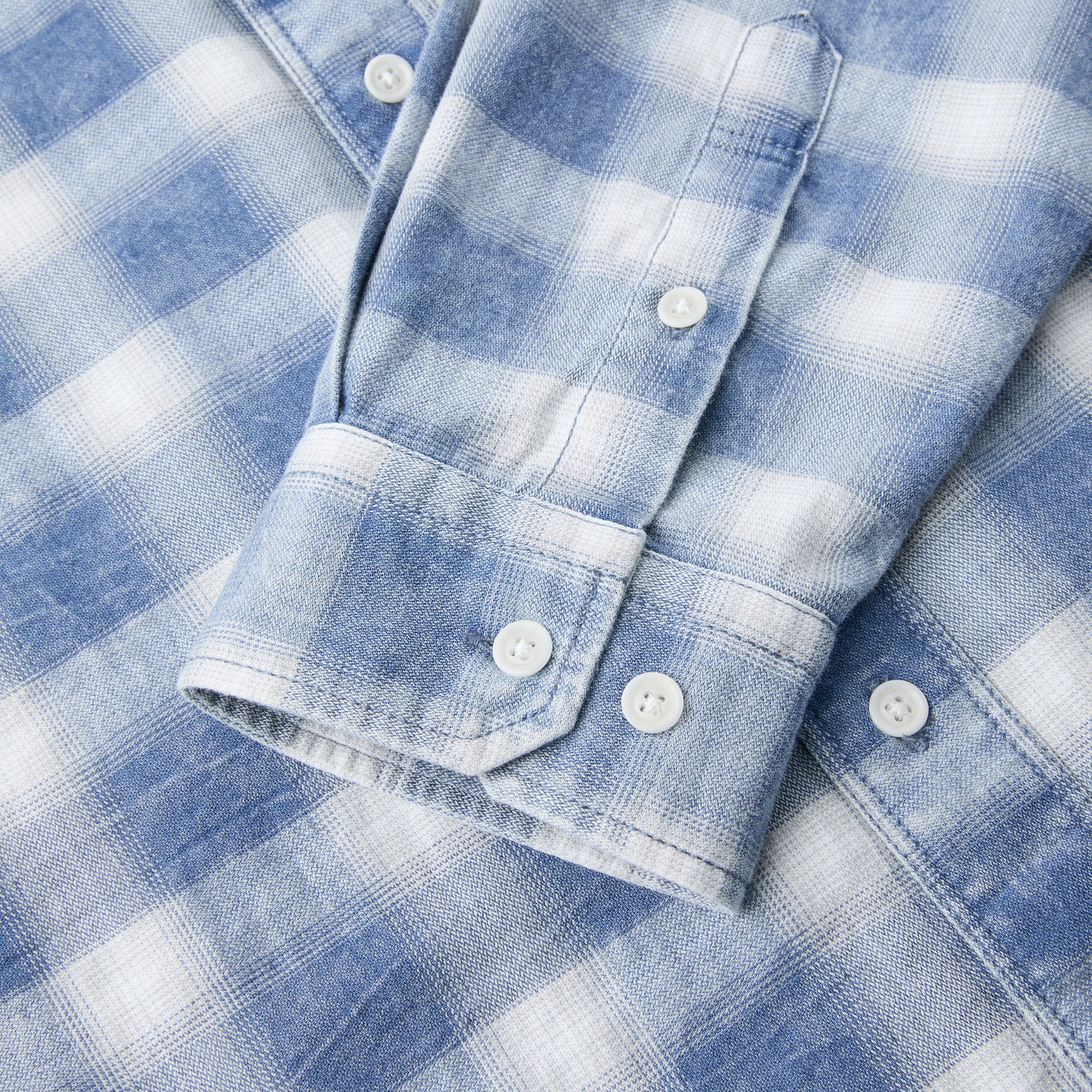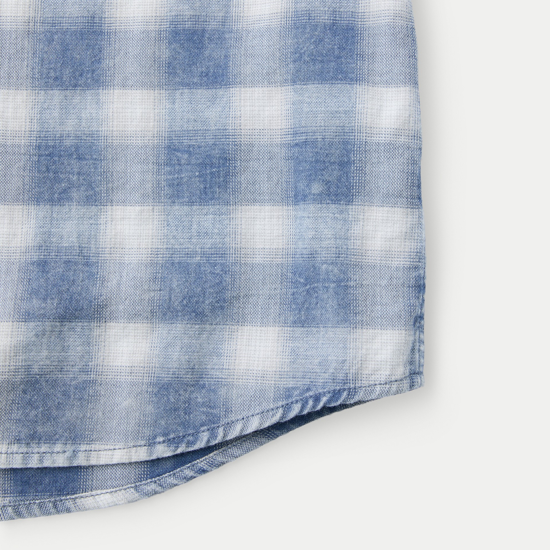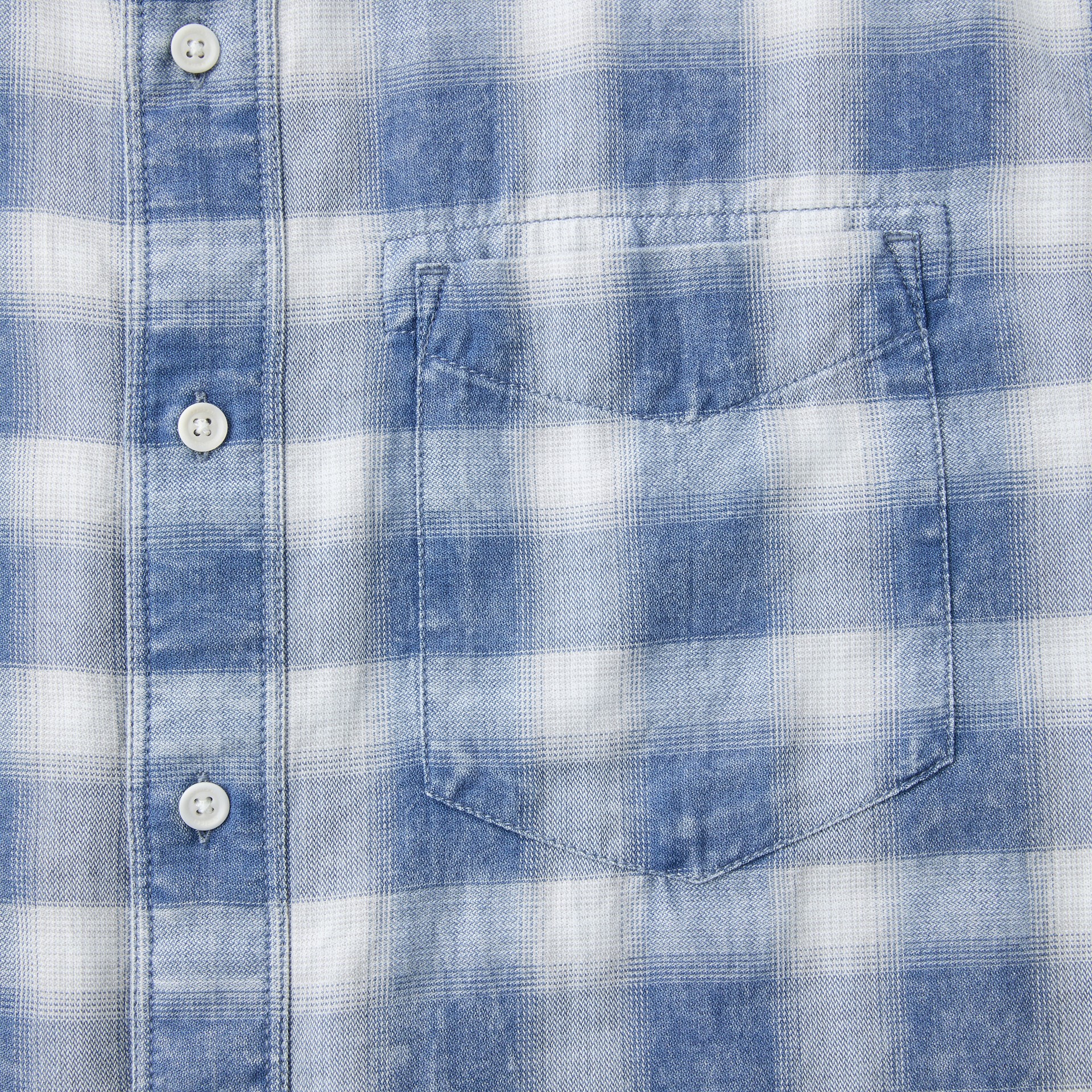 인디고 원사를 사용한 체크 패턴에 가먼트 워싱을 더해 빈티지한 외관이 돋보이는 셔츠.