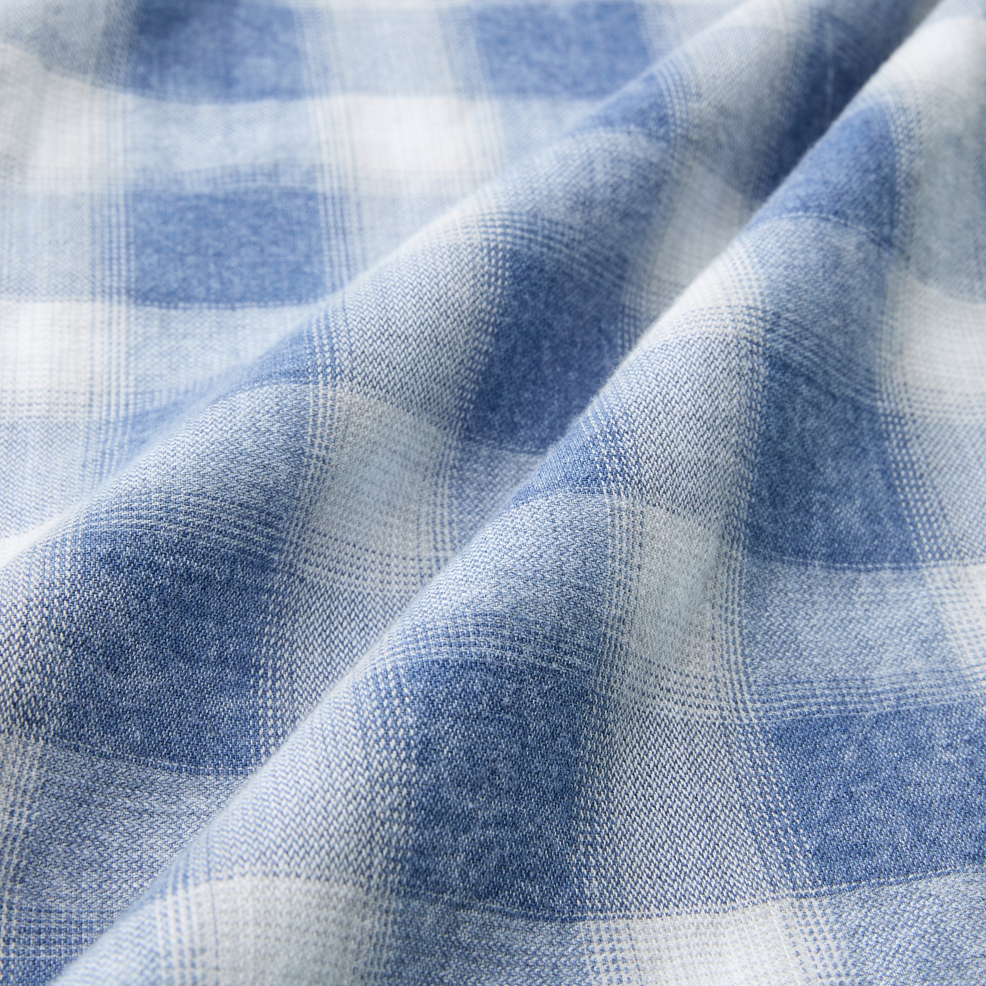 인디고 원사 체크 패턴으로 클래식하면서도 깊이 있는 컬러감 표현.