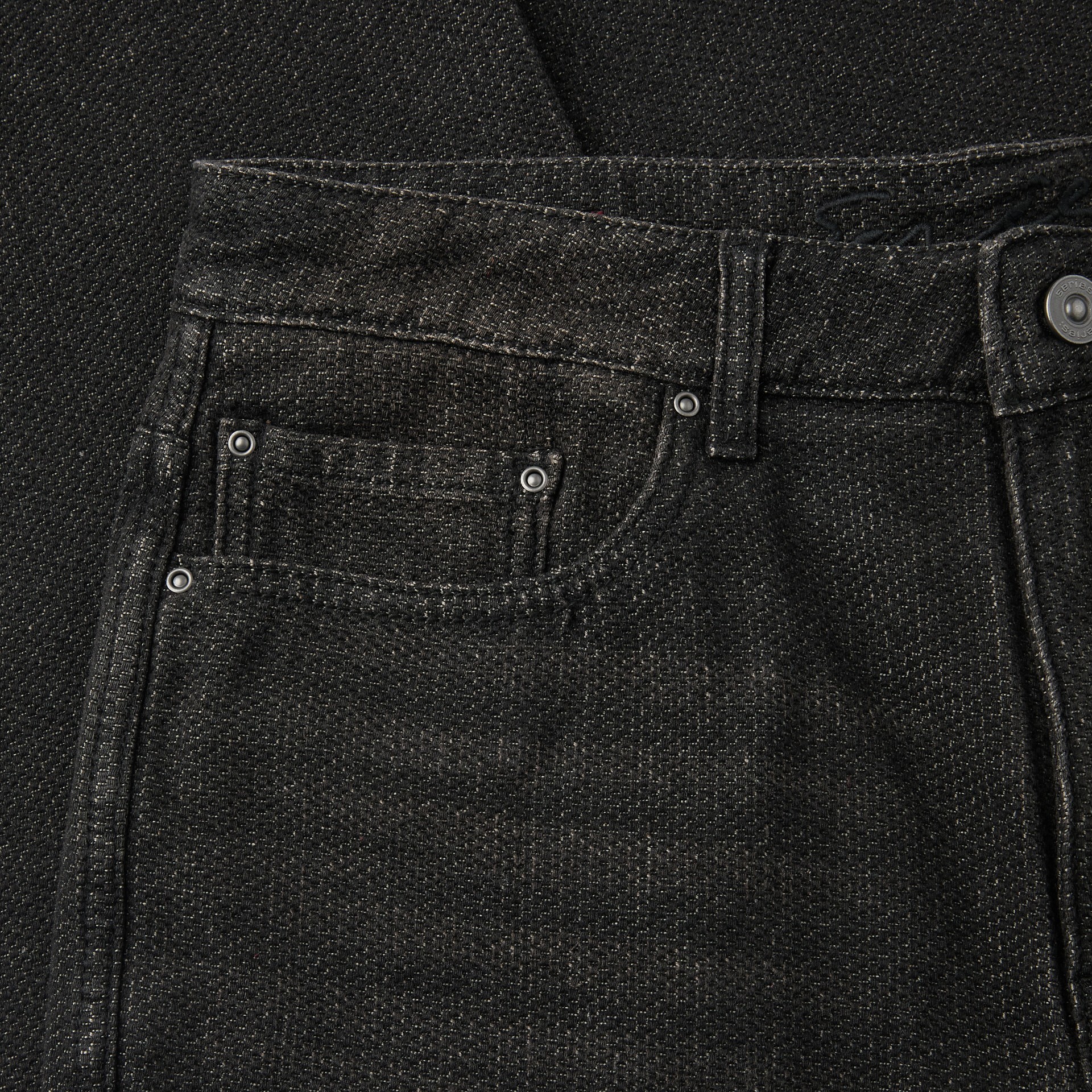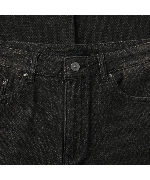 일반적인 트윌 조직이 아닌 변형된 조직을 사용해 힘 있는 소재감이 특징.
