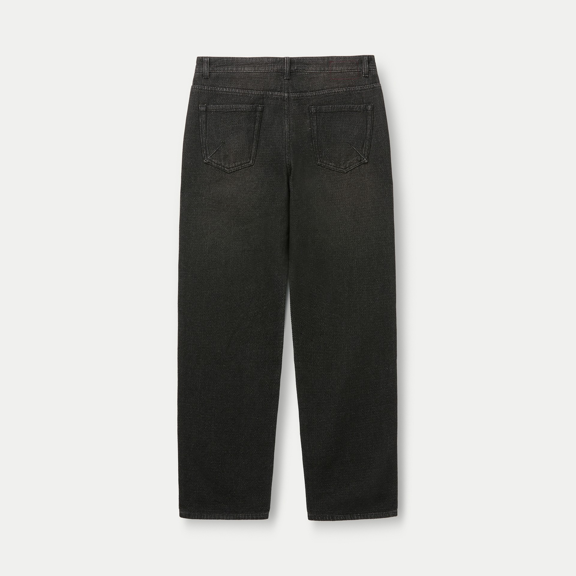 전반적으로 여유 있게 떨어지는 루즈 스트레이트 핏의 데님.