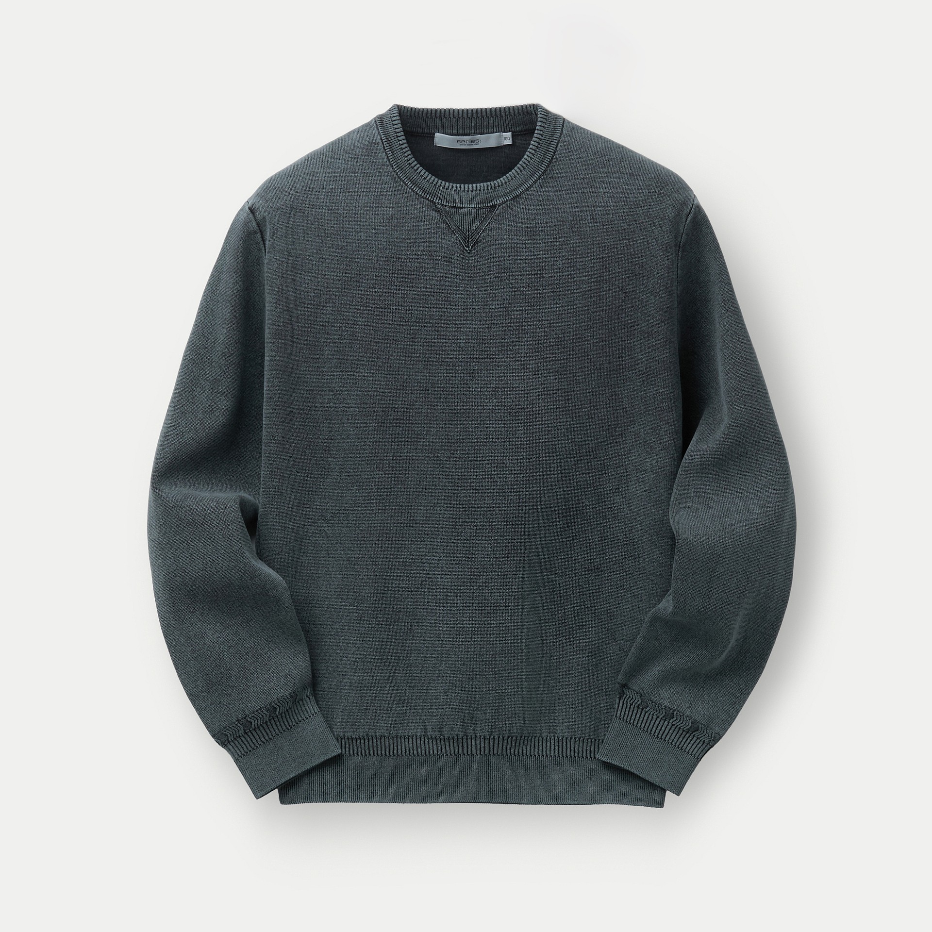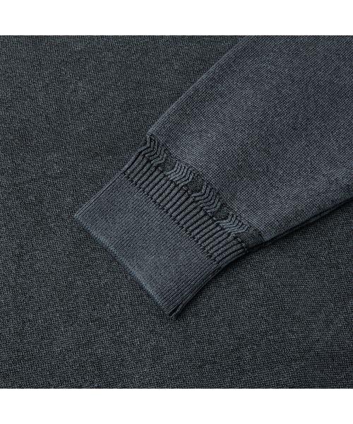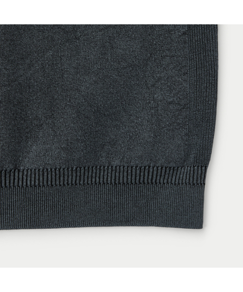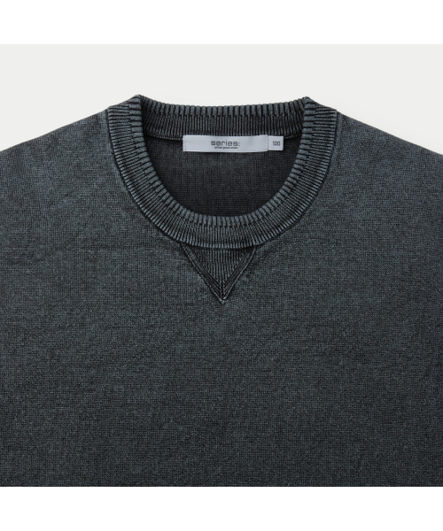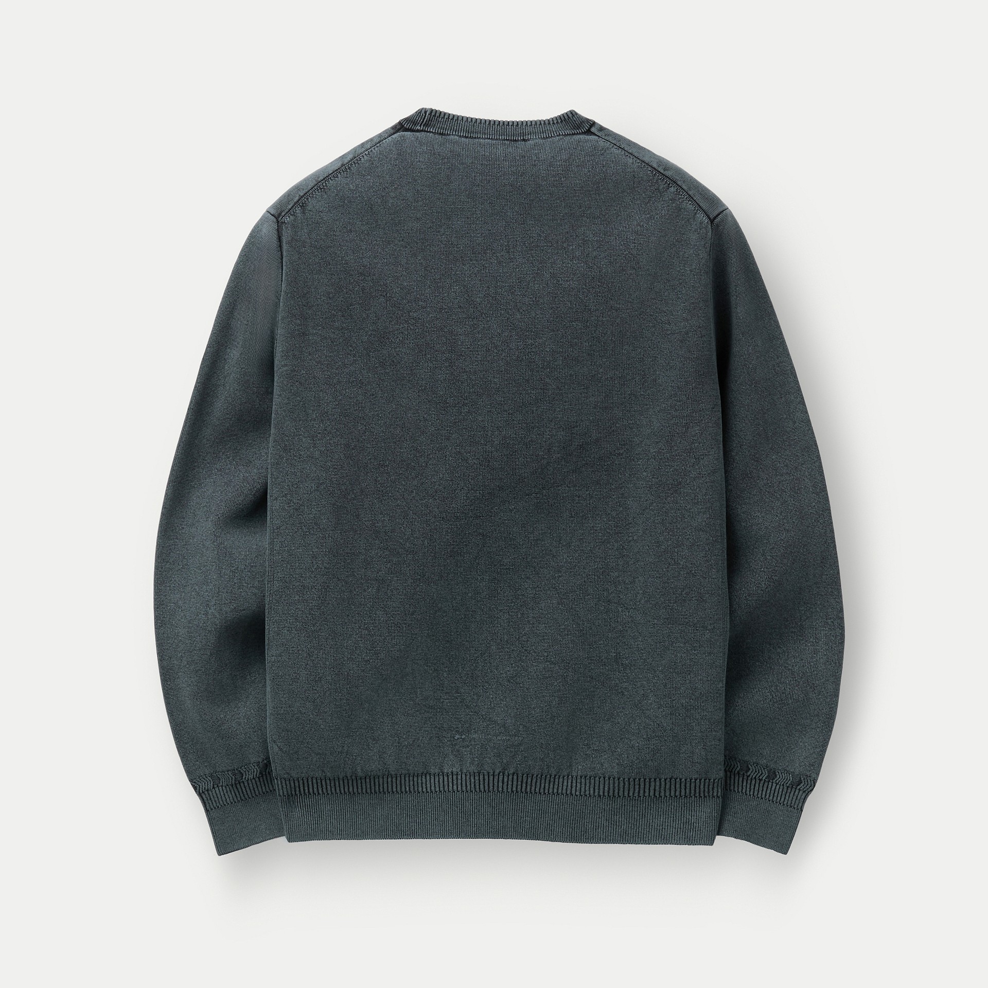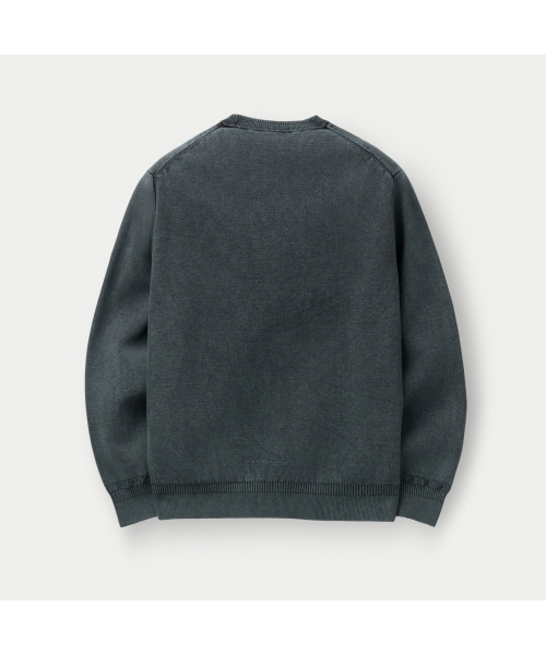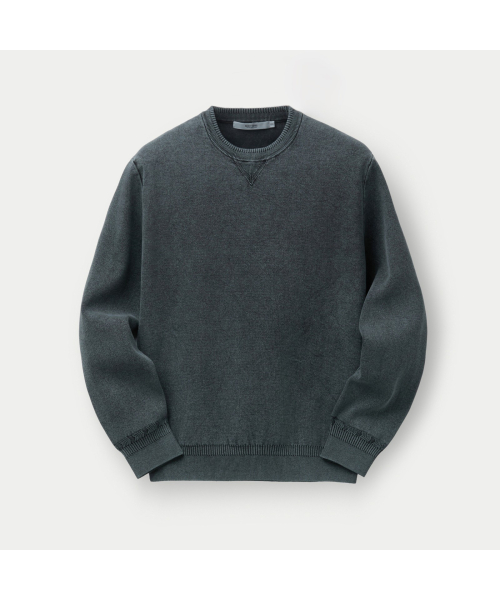 니트 조직의 표면감에 가먼트 다잉이 더해져 빈티지한 외관 연출.