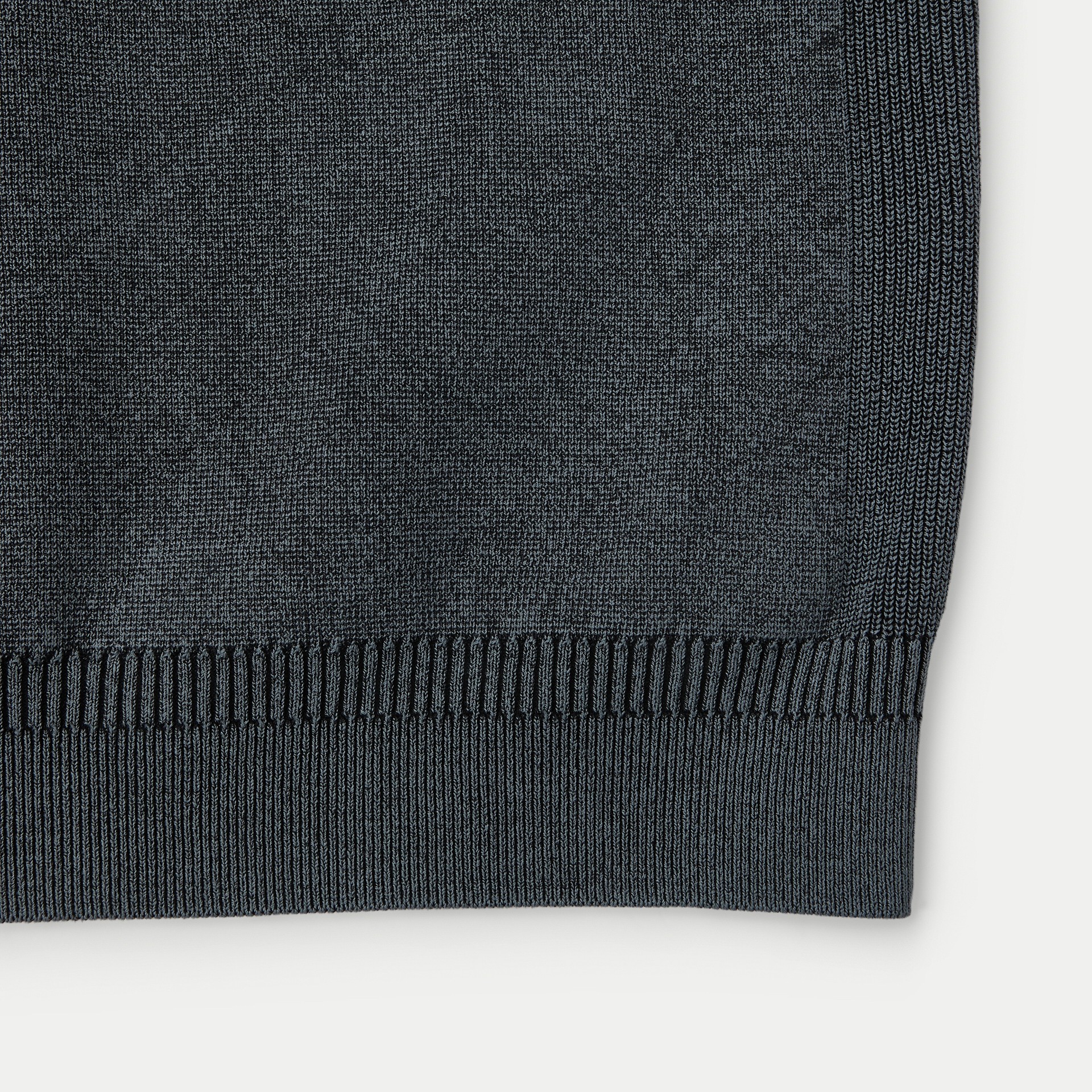 몸판 옆선 조직 배색으로 단조로움 완화 및 다잉 컬러 깊이감 강화.