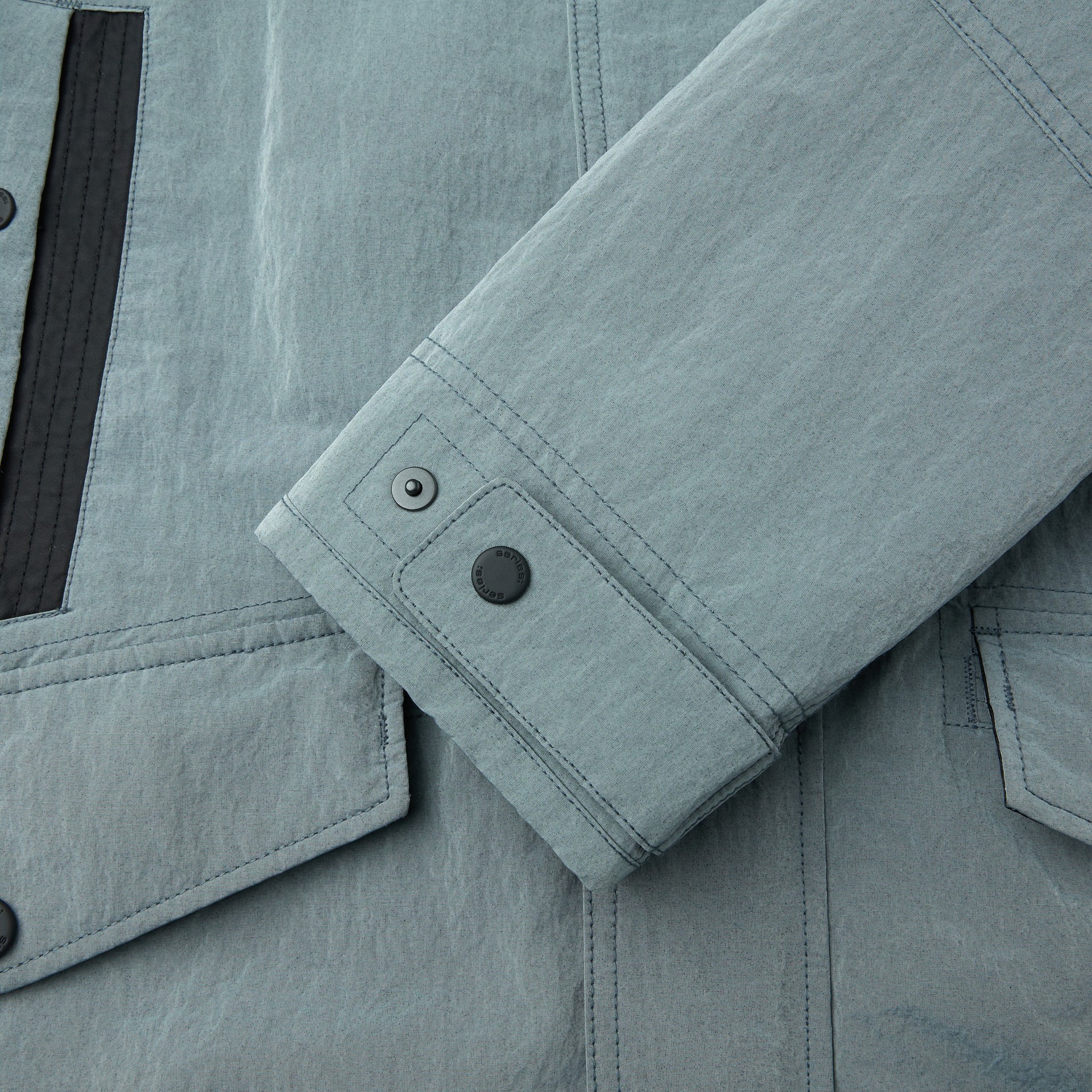 폴리 나일론 혼방 소재의 염색 편차로 자연스러운 빈티지한 투톤 표현.