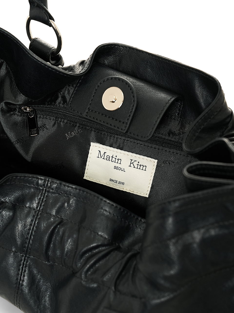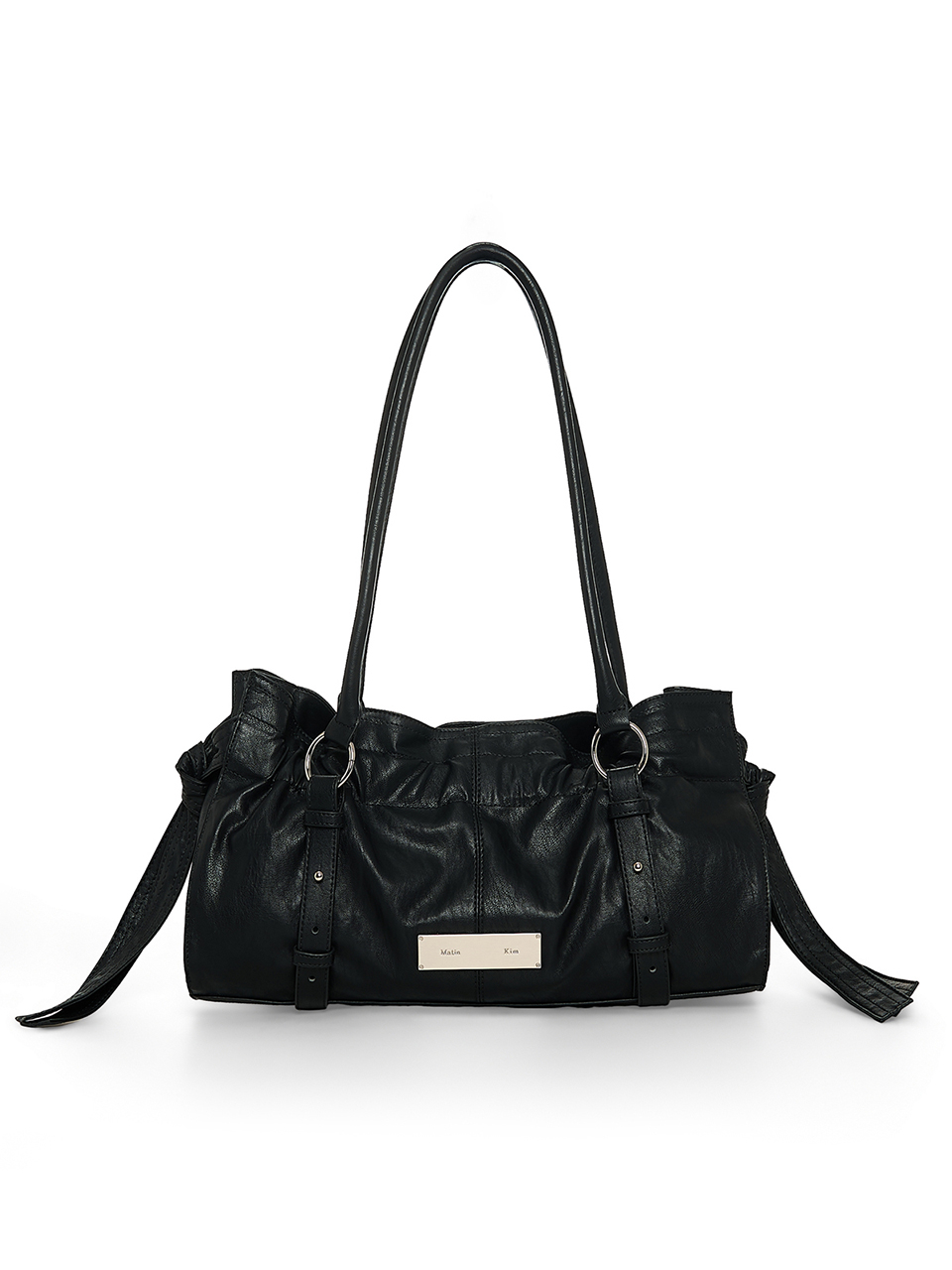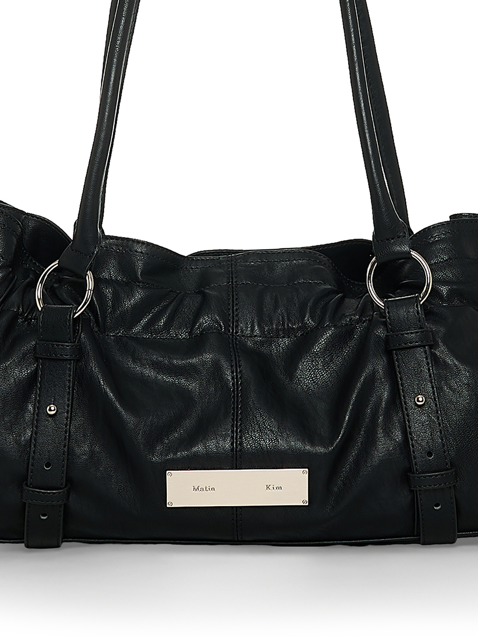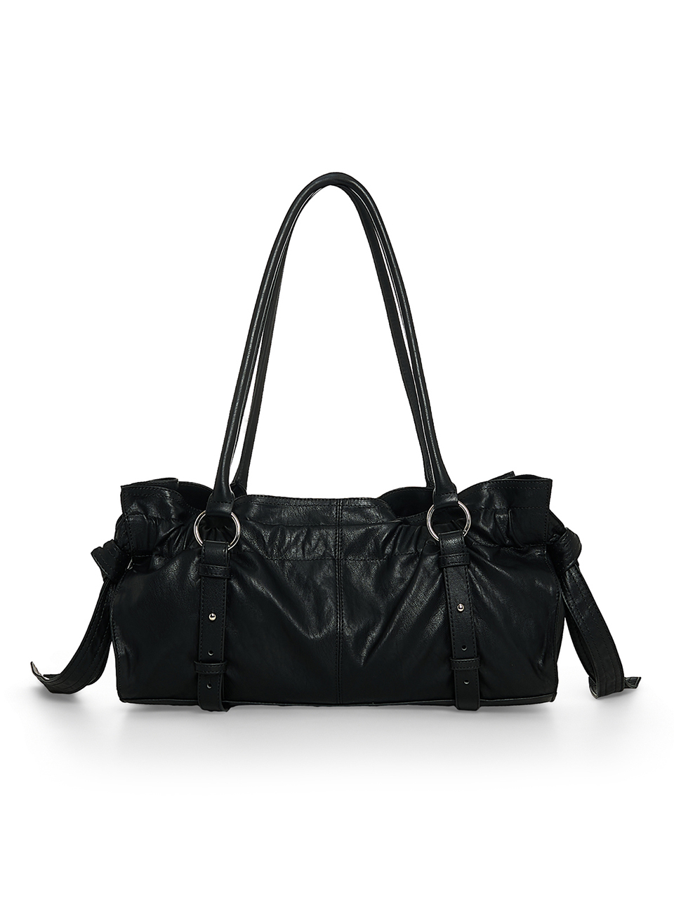 셔링과 버클 스트랩 디테일이 돋보이는 숄더백