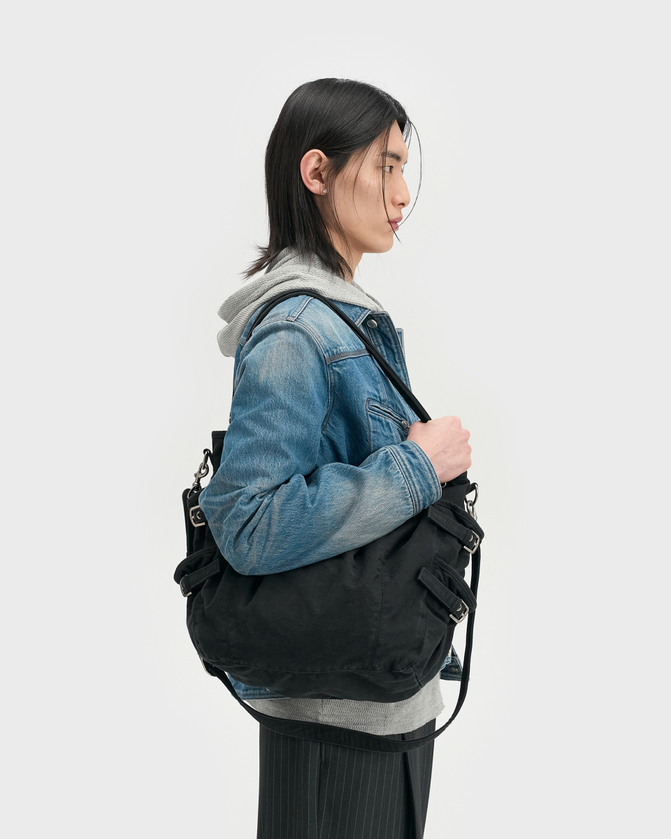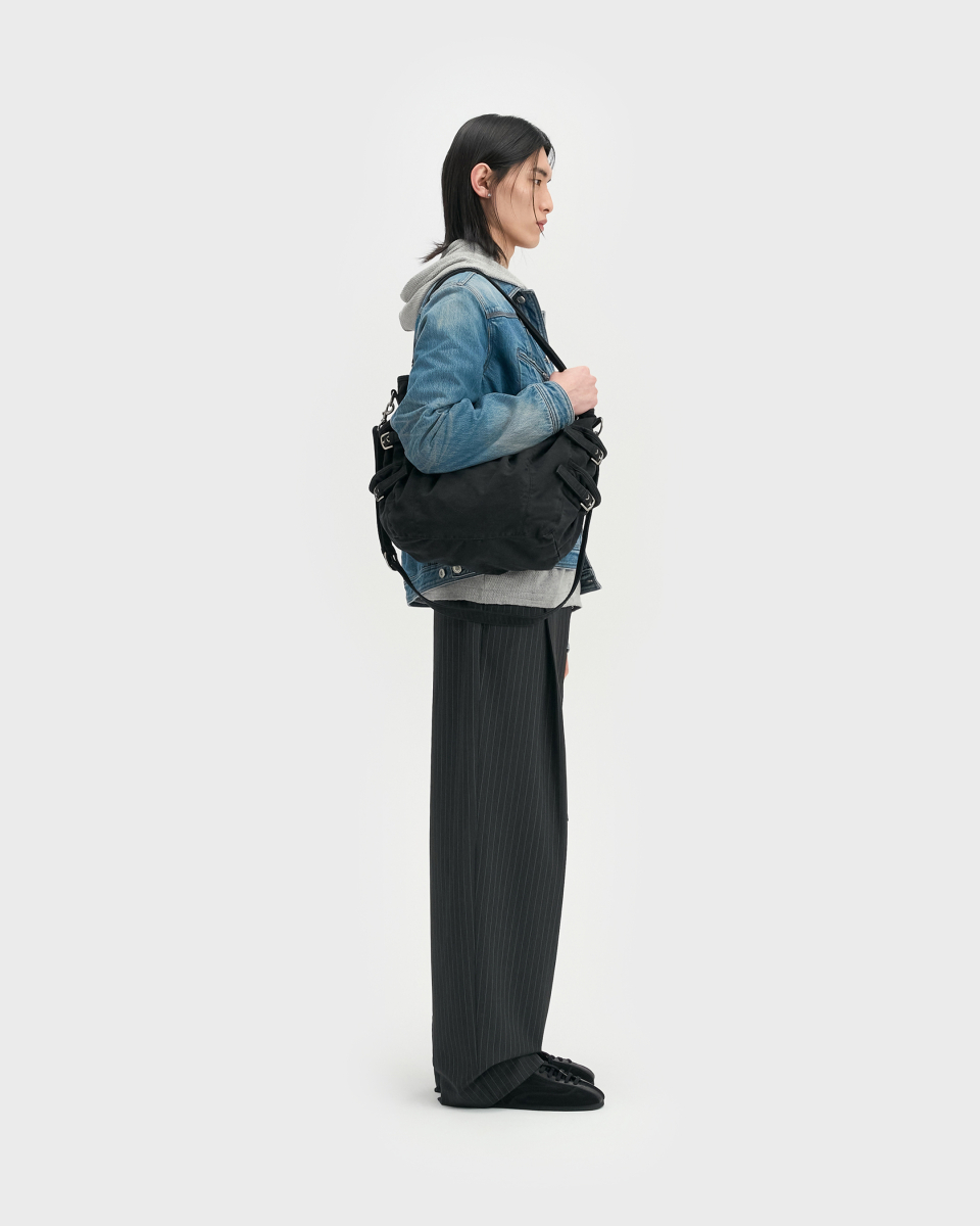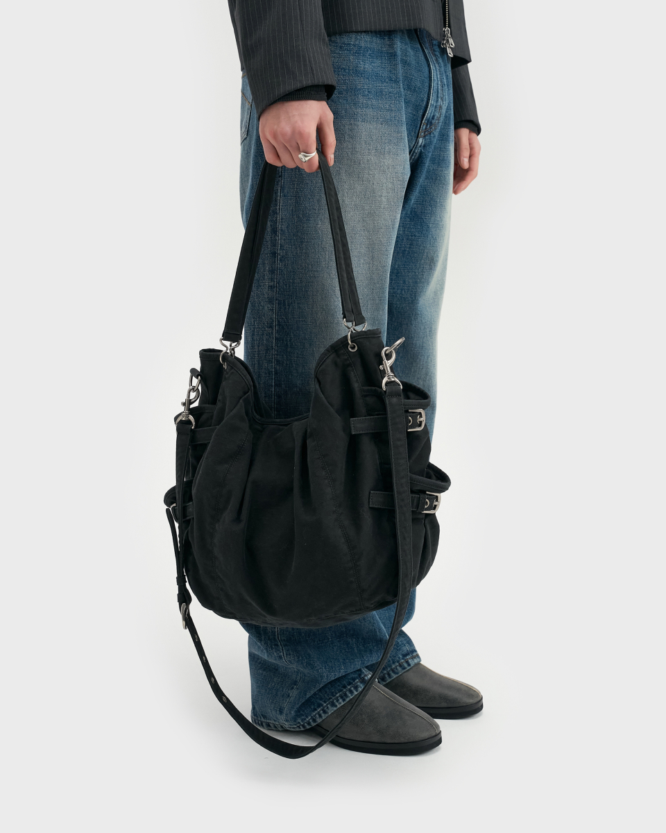 절제된 빈티지 무드를 담아 의도된 주름과 포켓, 턱 디테일로 완성한 3웨이 백.