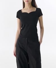 우먼즈 슬림 하트 넥 티셔츠 [블랙]