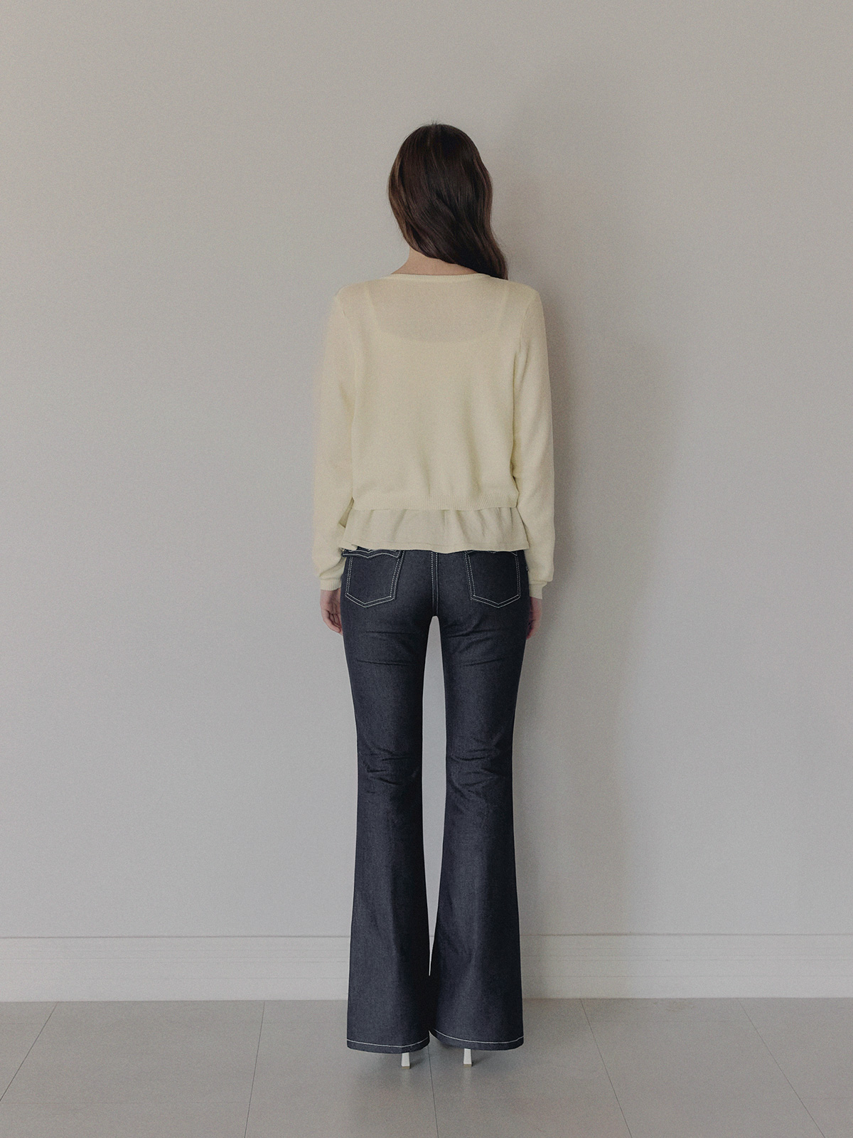 포카 생지 세미 부츠컷 롱 데님 팬츠