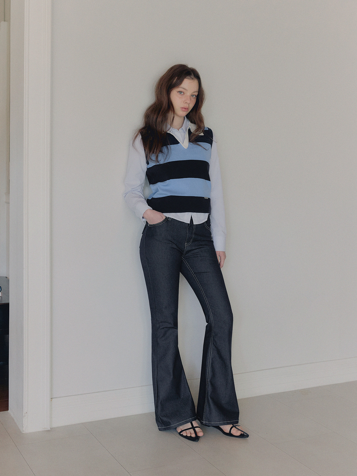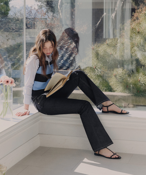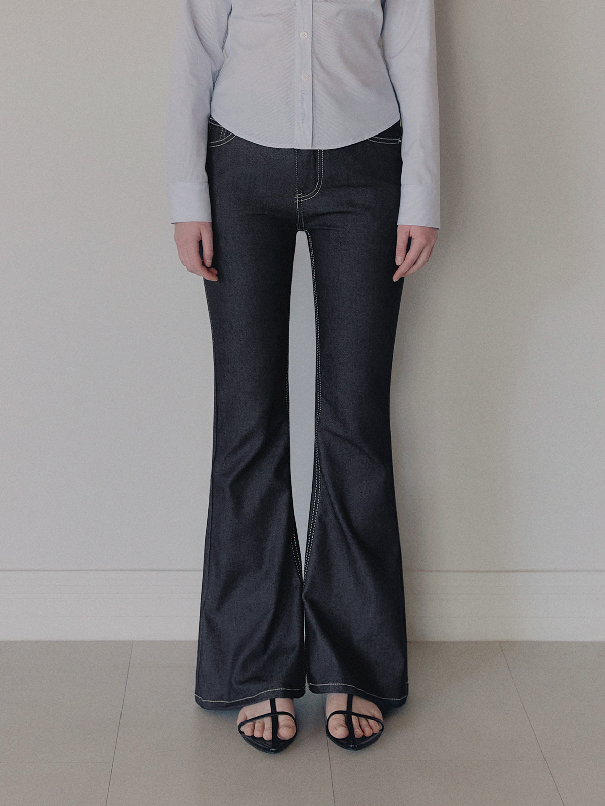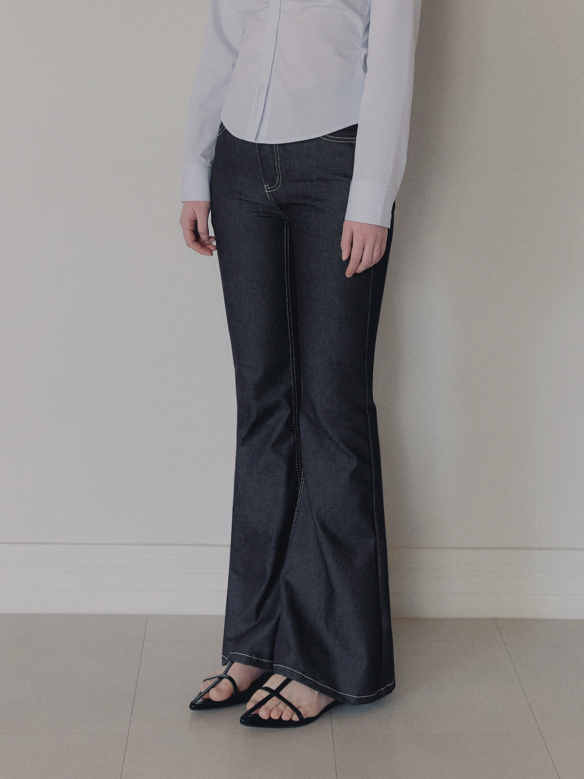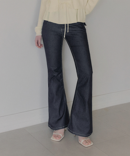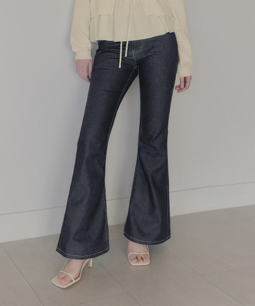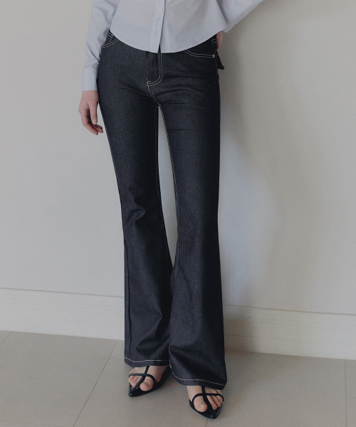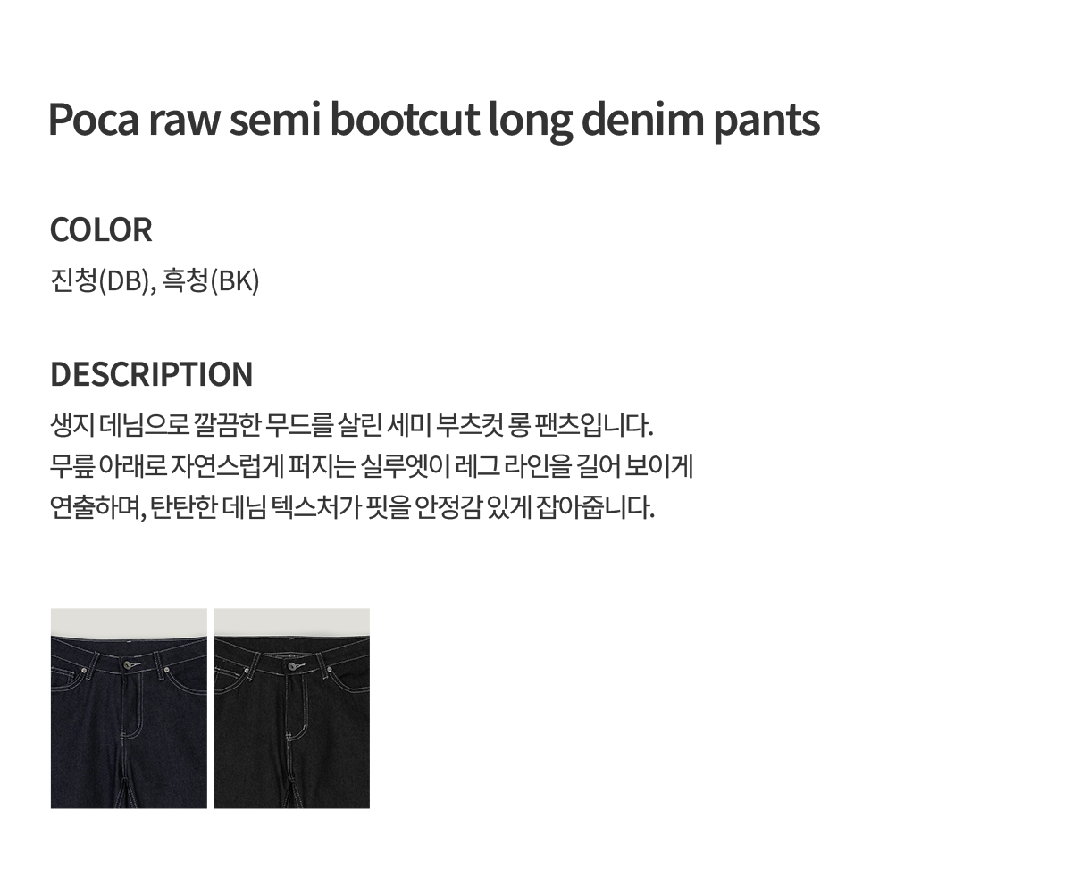포카 생지 세미 부츠컷 롱 데님 팬츠