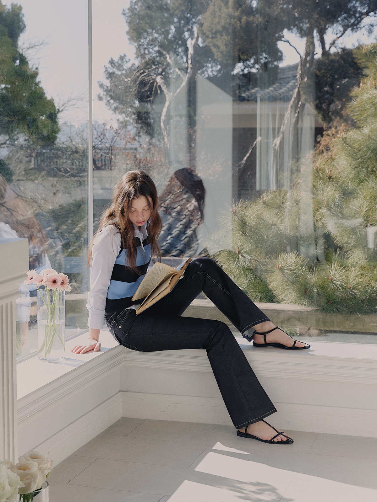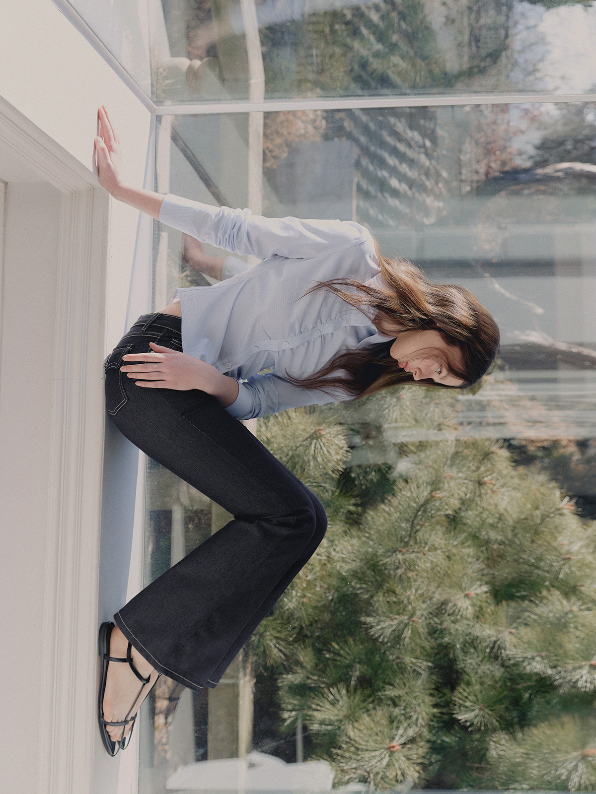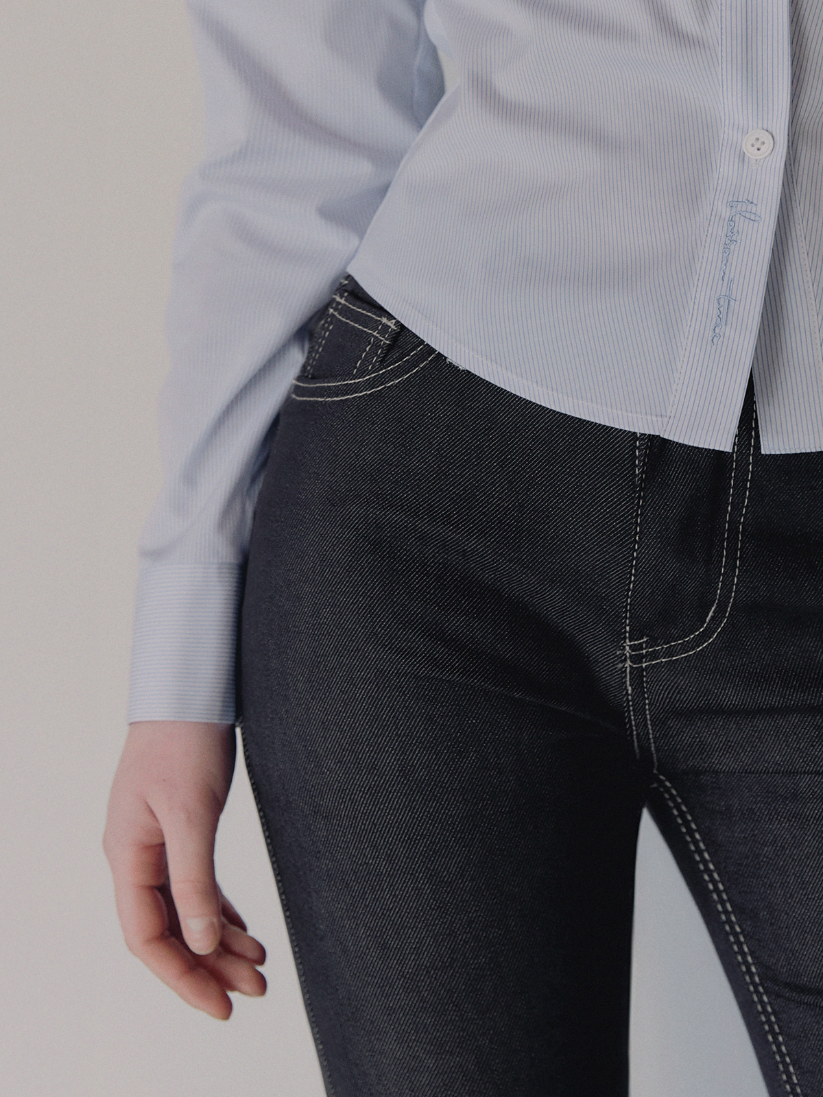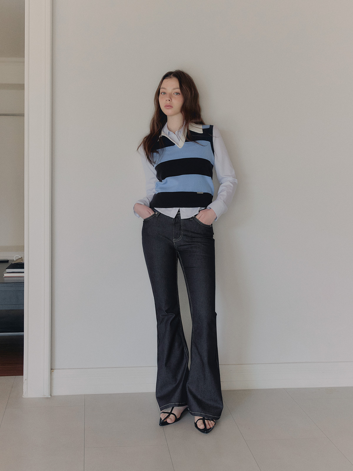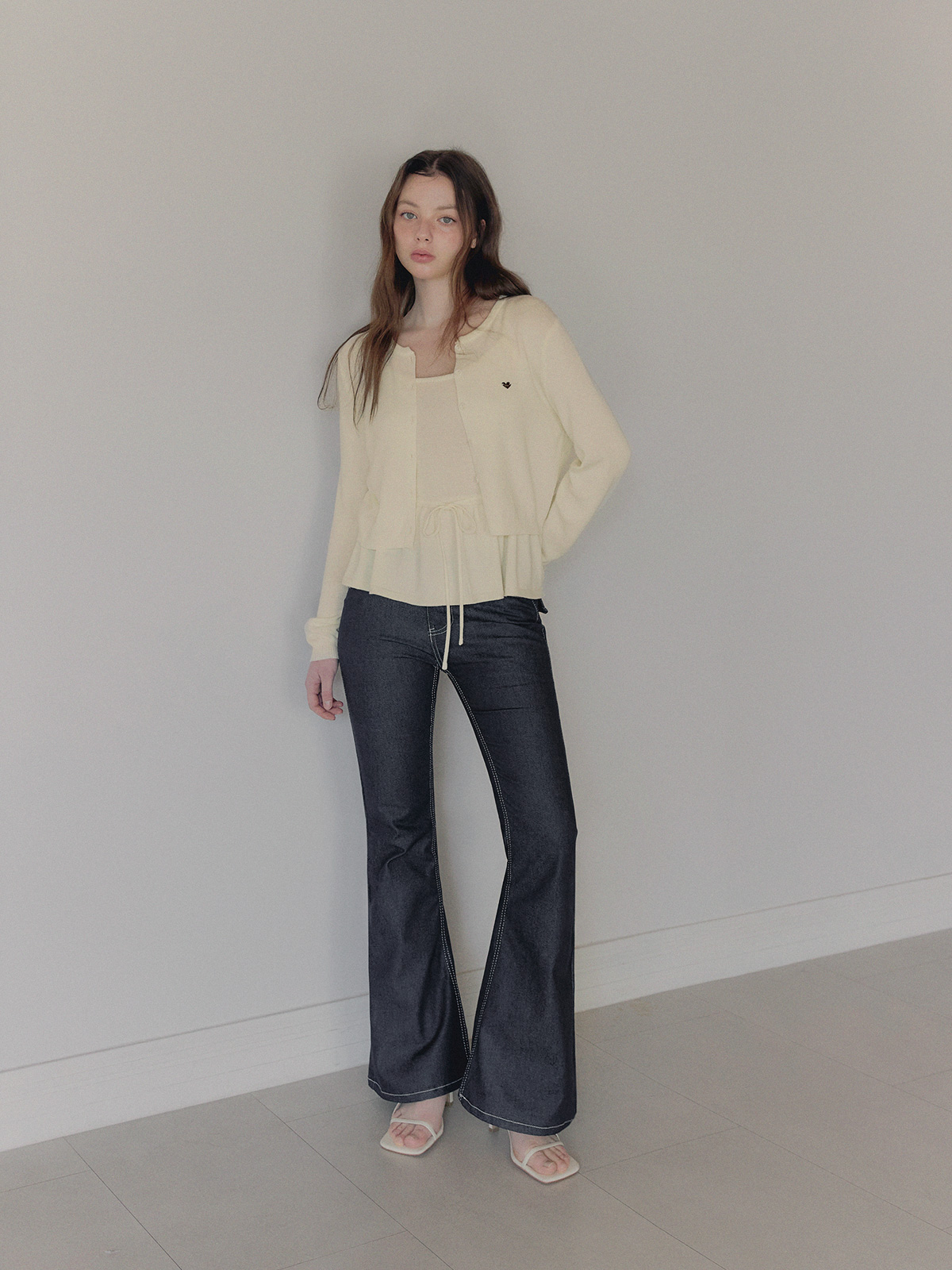 포카 생지 세미 부츠컷 롱 데님 팬츠