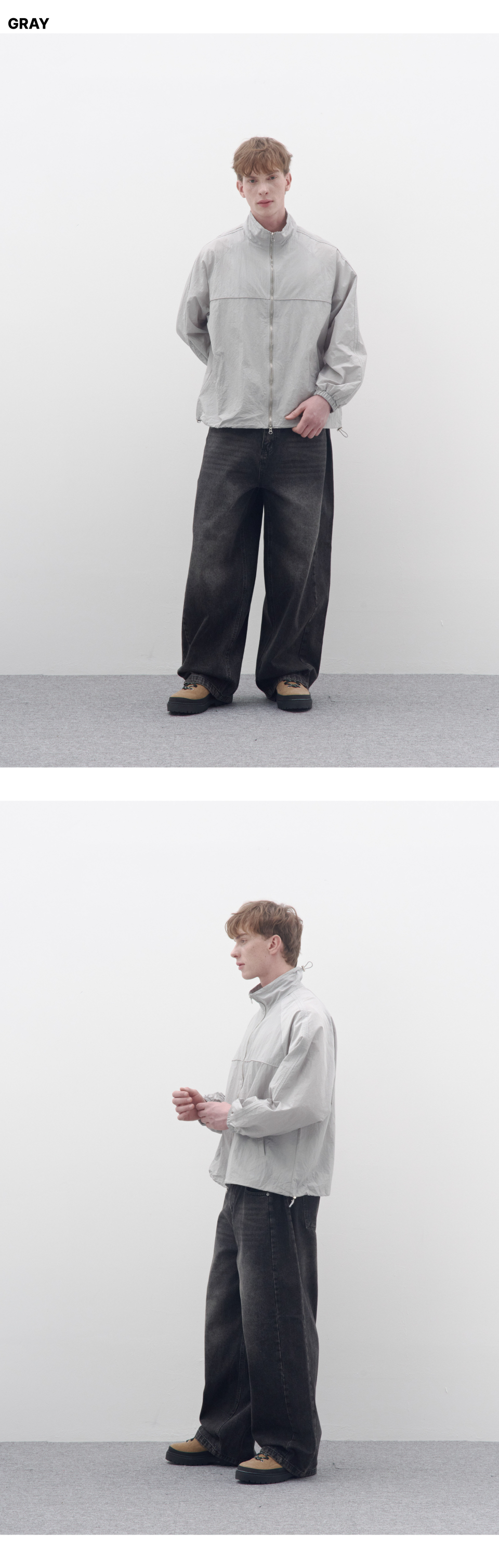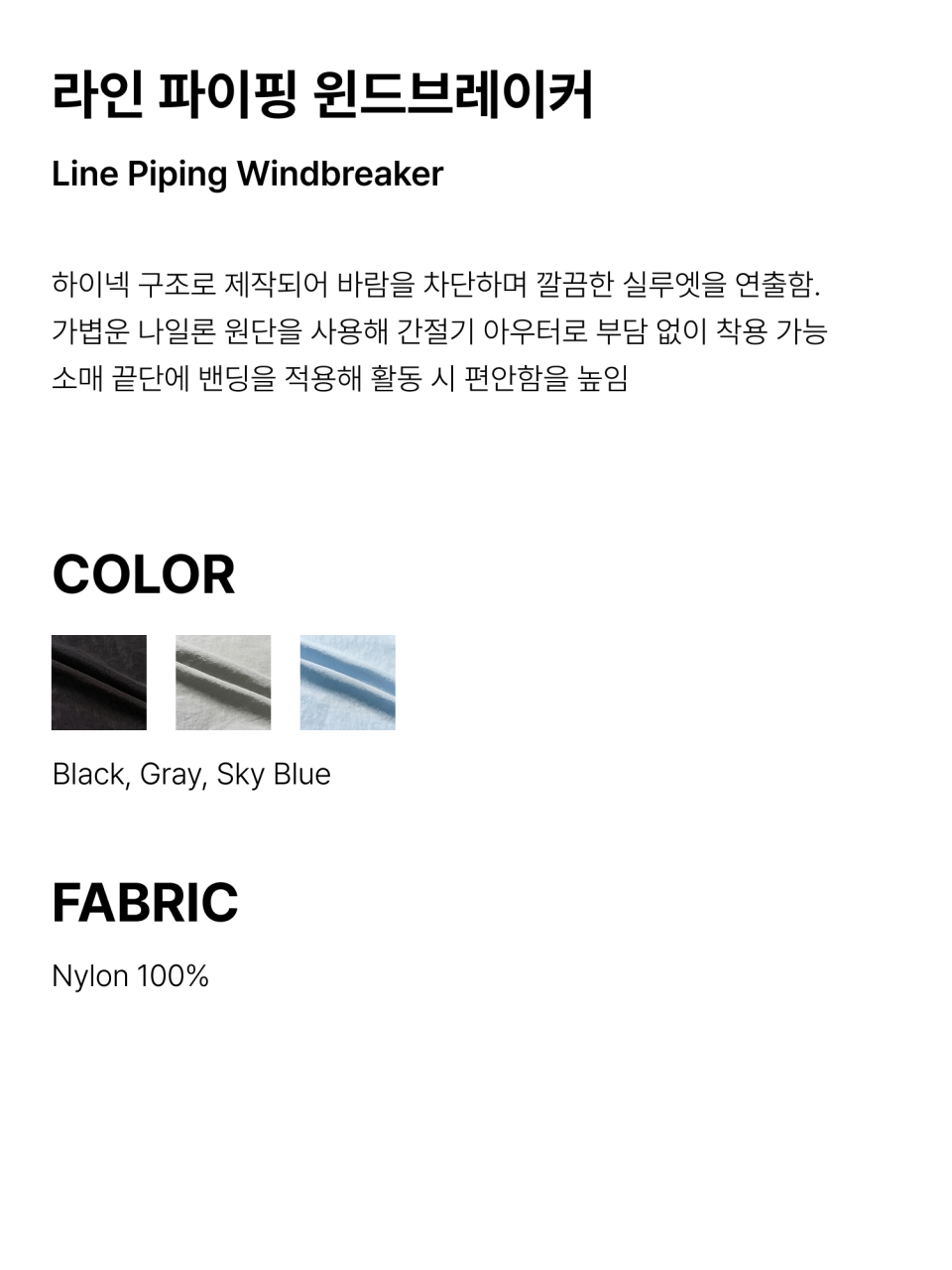 라인 파이핑 윈드브레이커 (그레이
