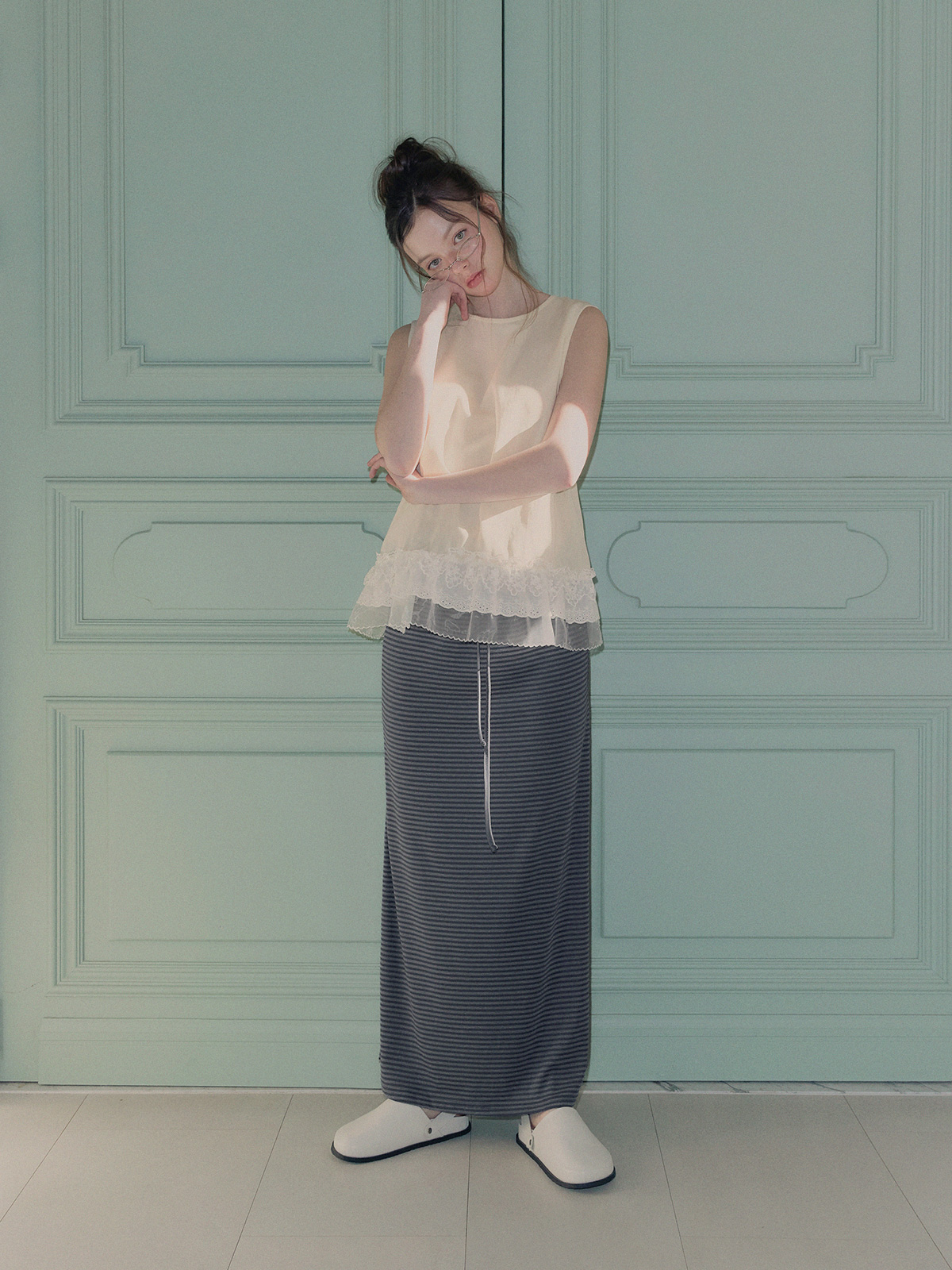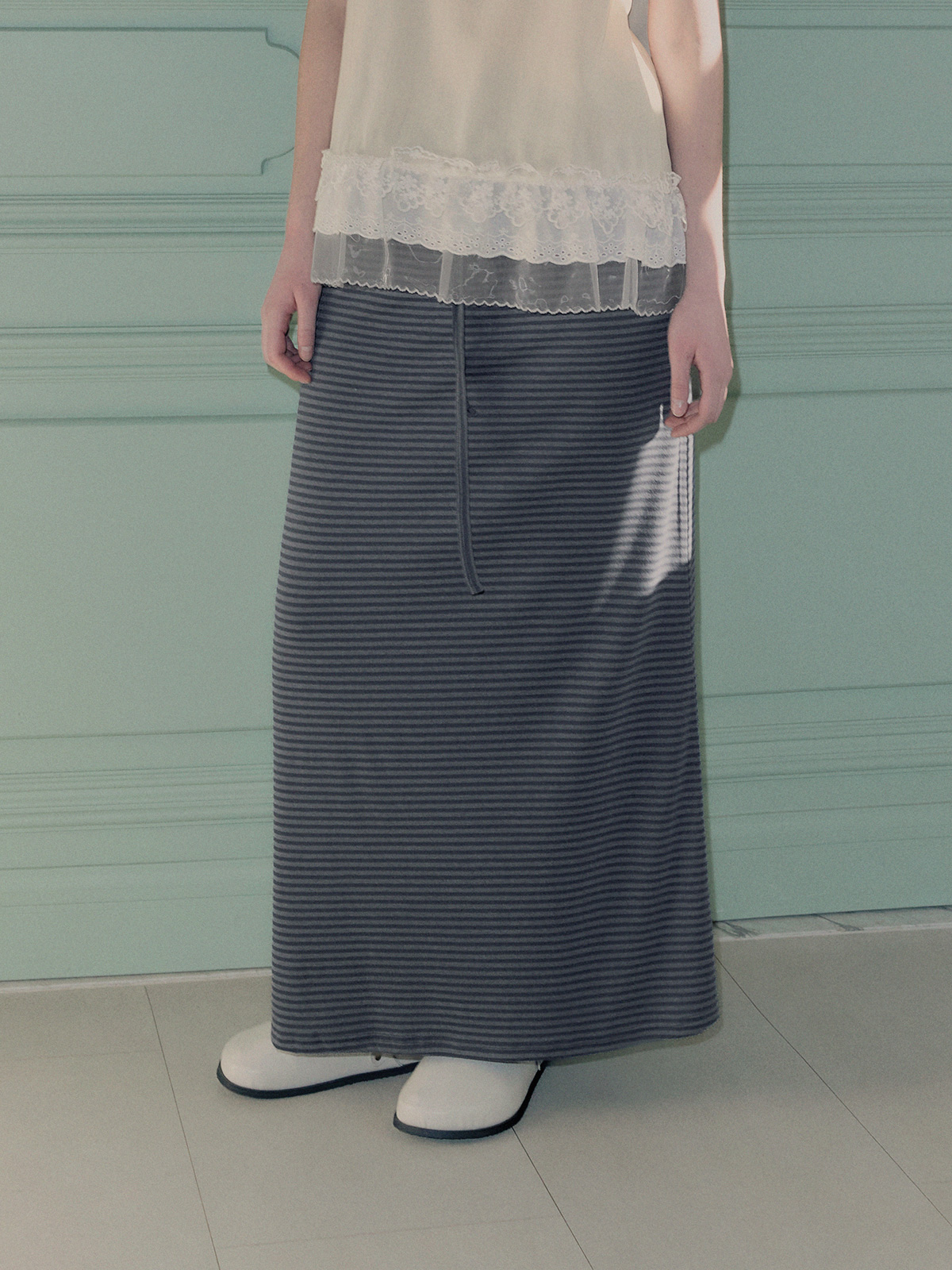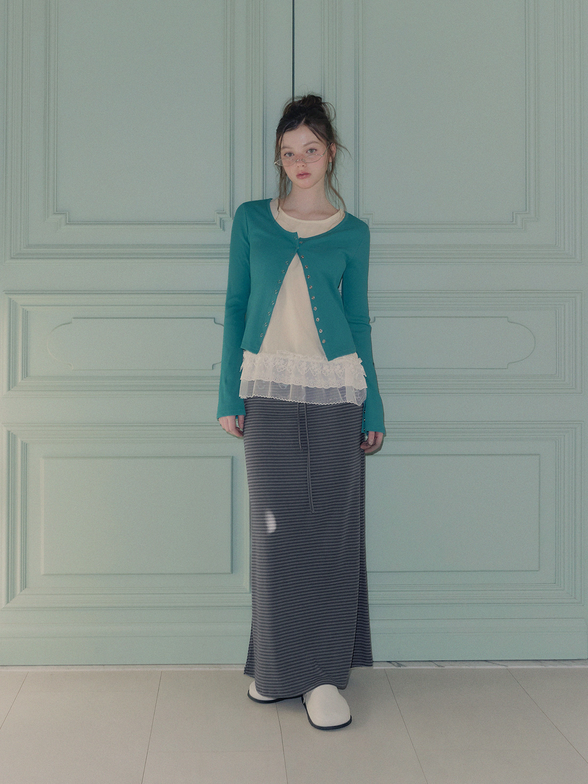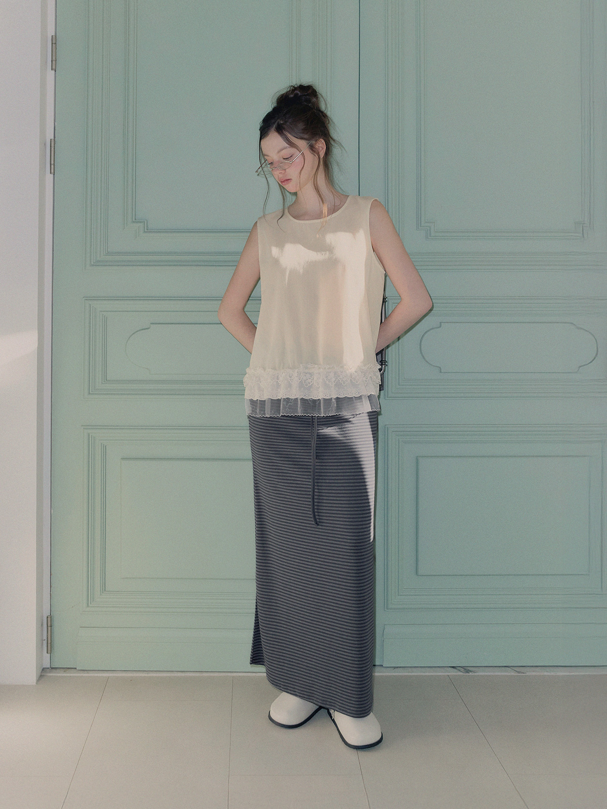 레이스 포인트 져지 롱 스커트 [아이보리]
