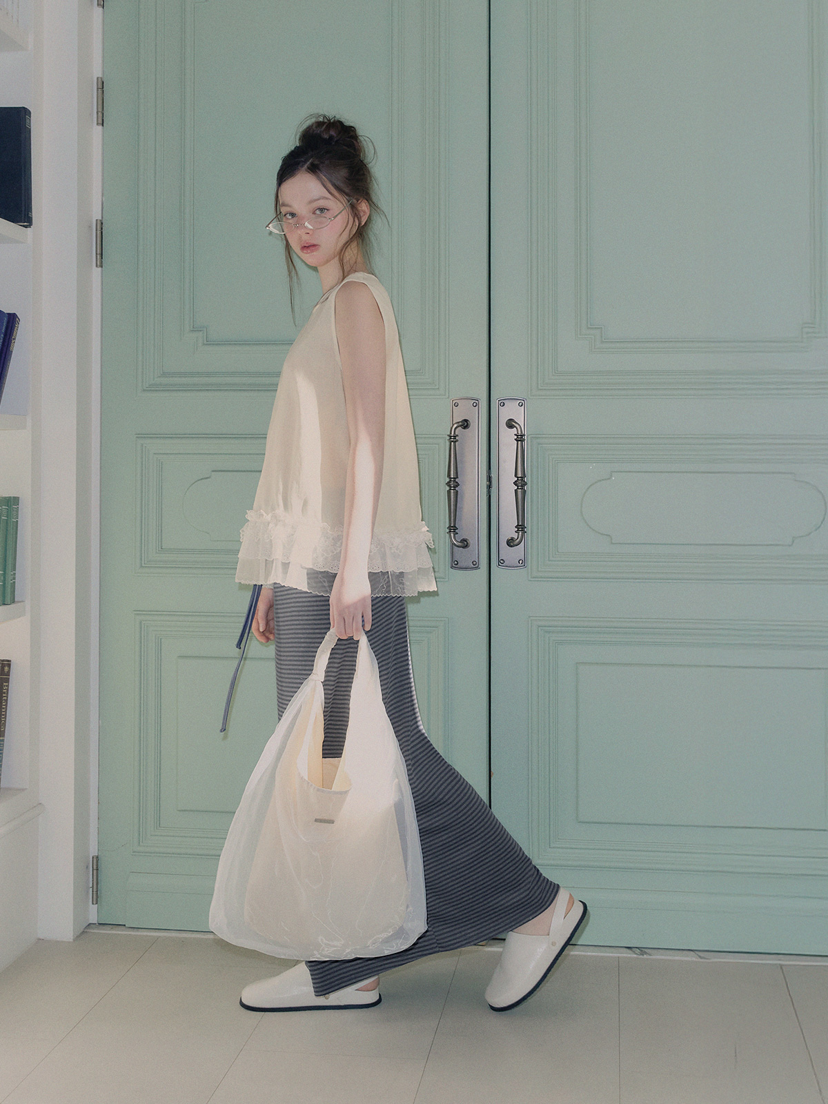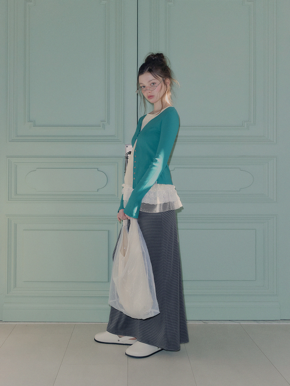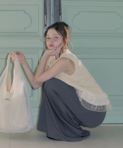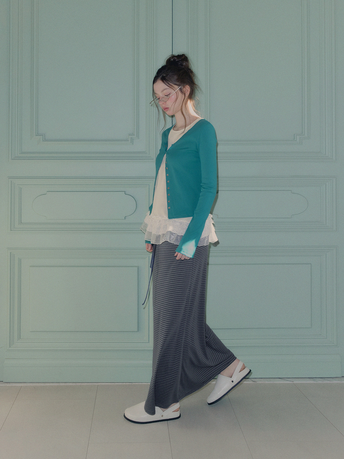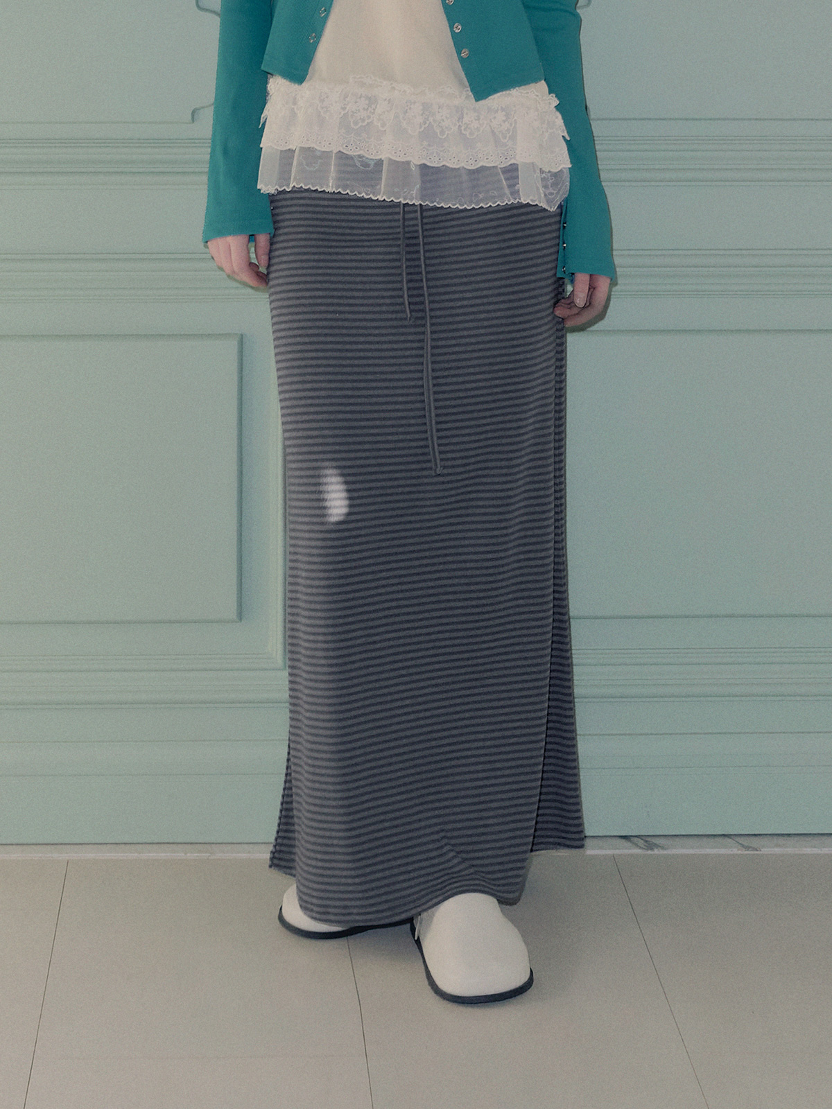 레이스 포인트 져지 롱 스커트 [아이보리]