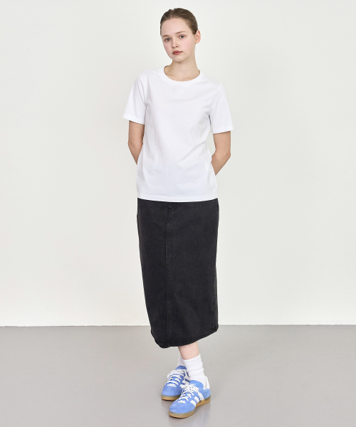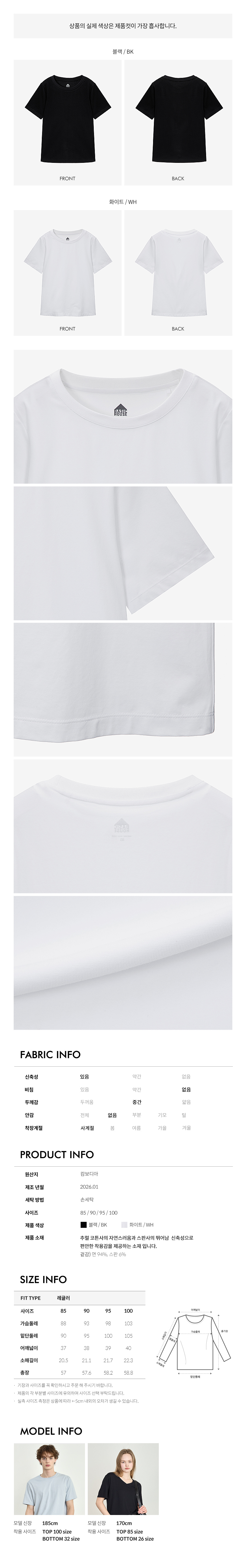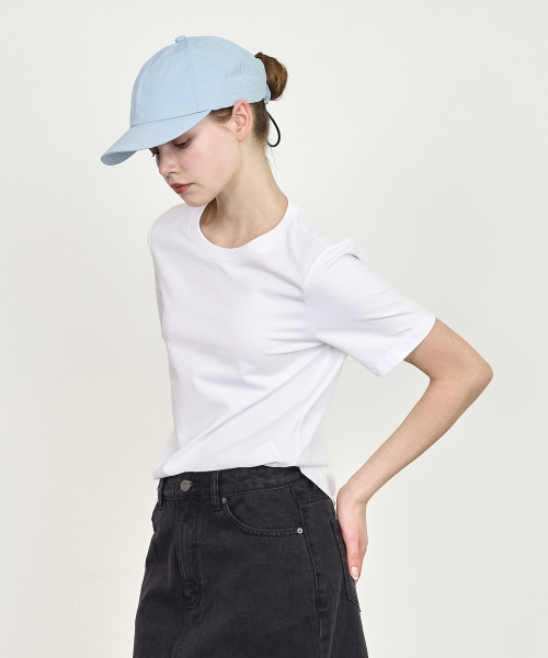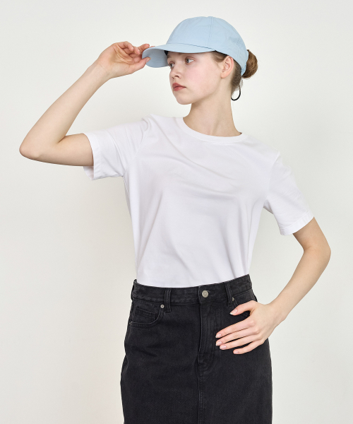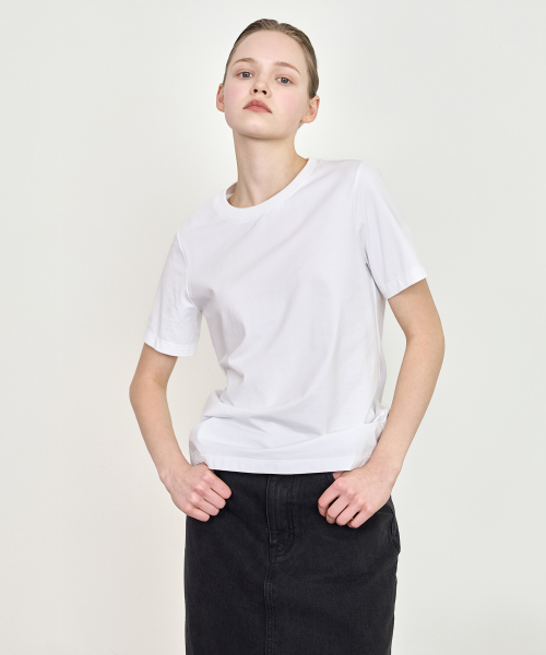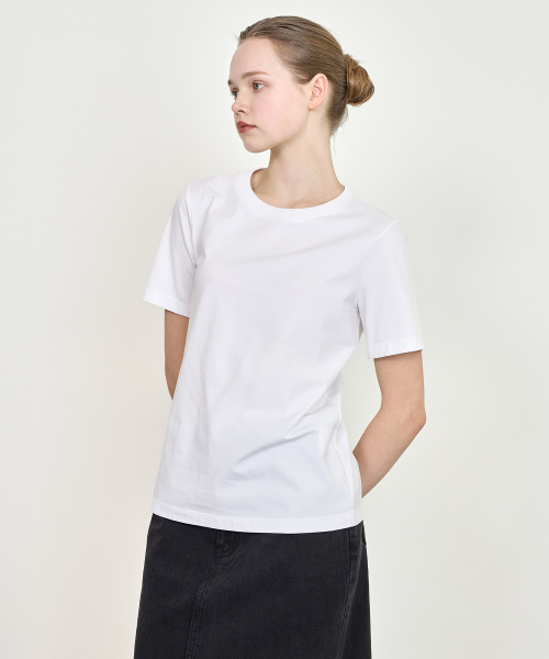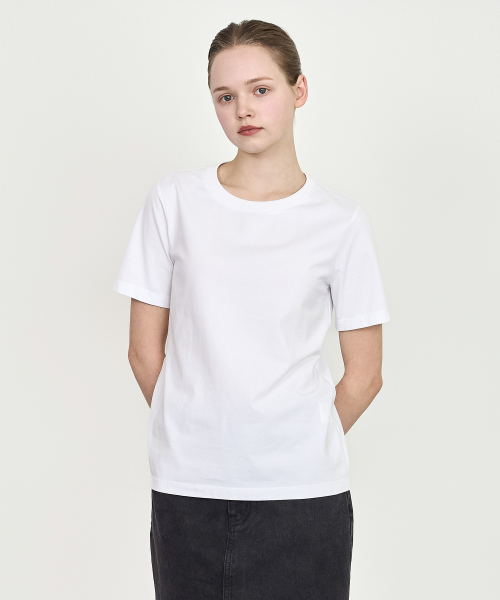 여성 스판 라운드넥 레귤러핏 반팔티셔츠 화이트